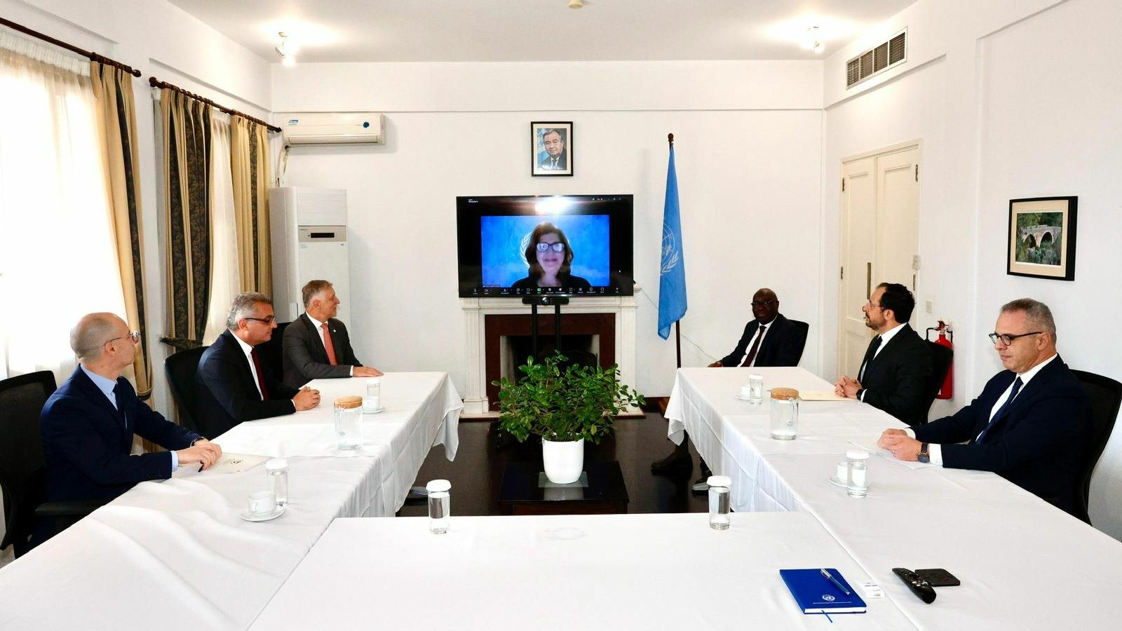 BM Genel Sekreteri'nin Kıbrıs Kişisel Temsilcisi Maria Angela Holguin de, görüşmeye video konferans yoluyla katıldı.