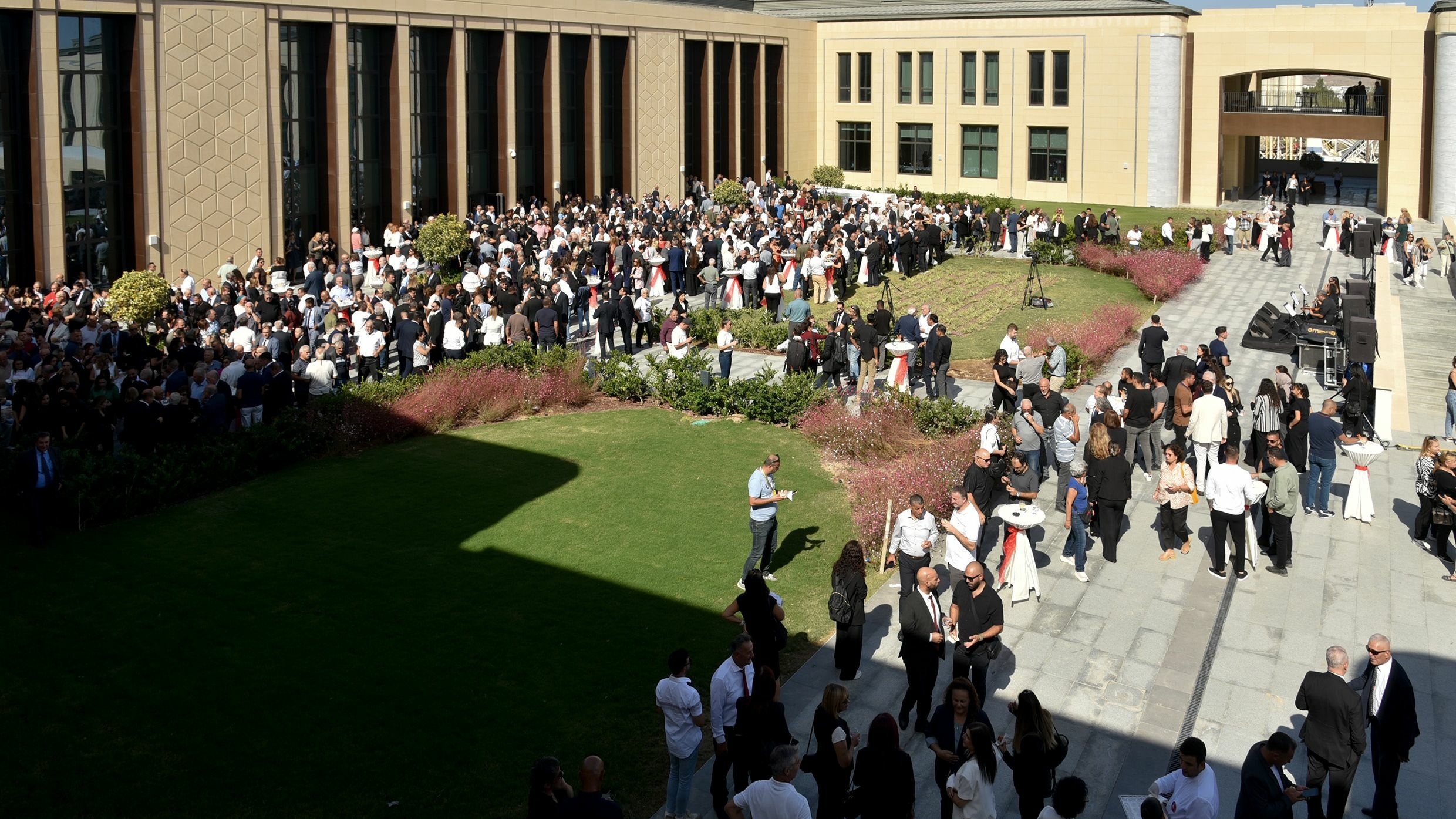 Resepsiyon öncesinde Cumhurbaşkanlığı binası önünde uzun kuyruk oluştuğu görüldü.