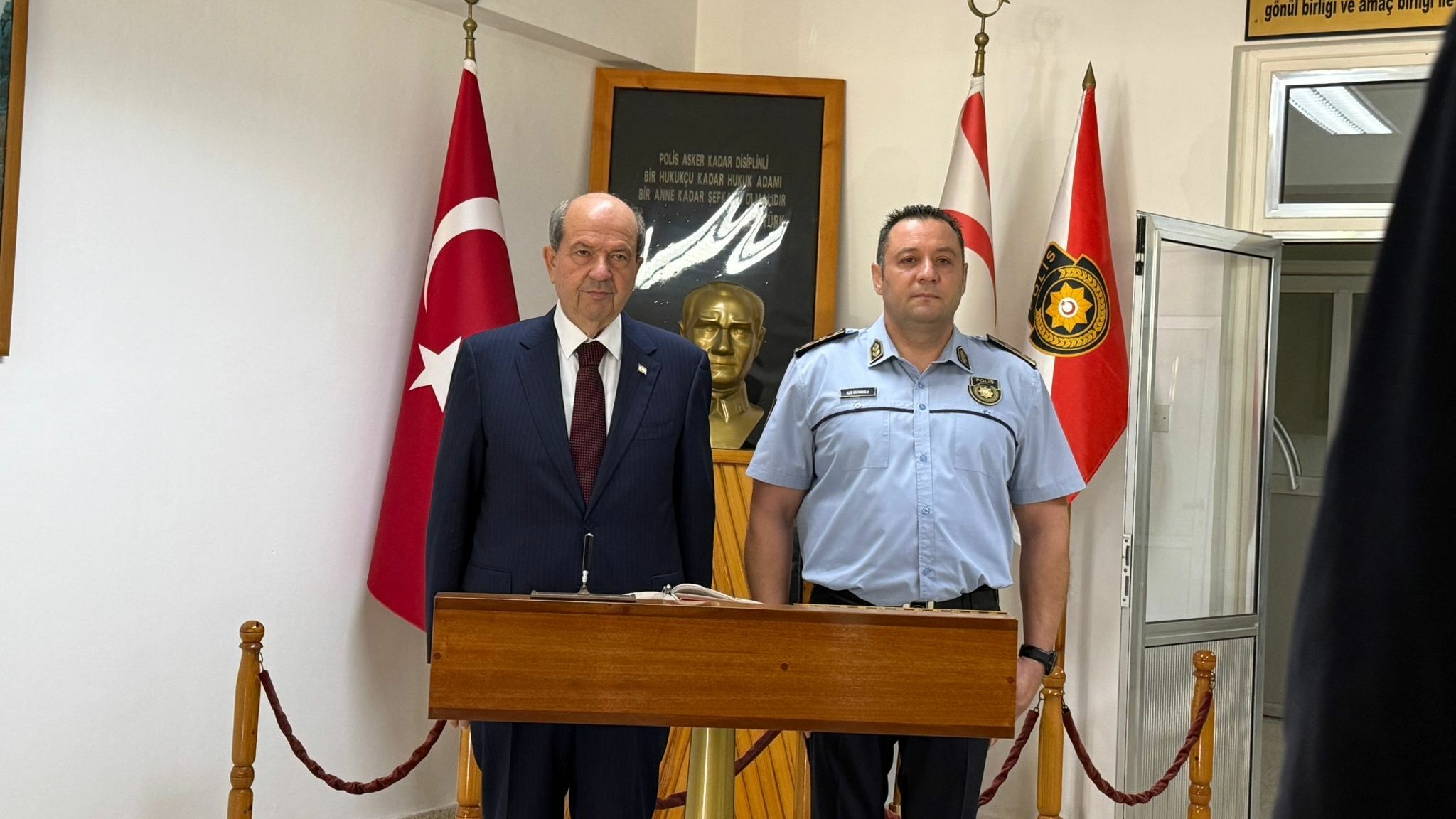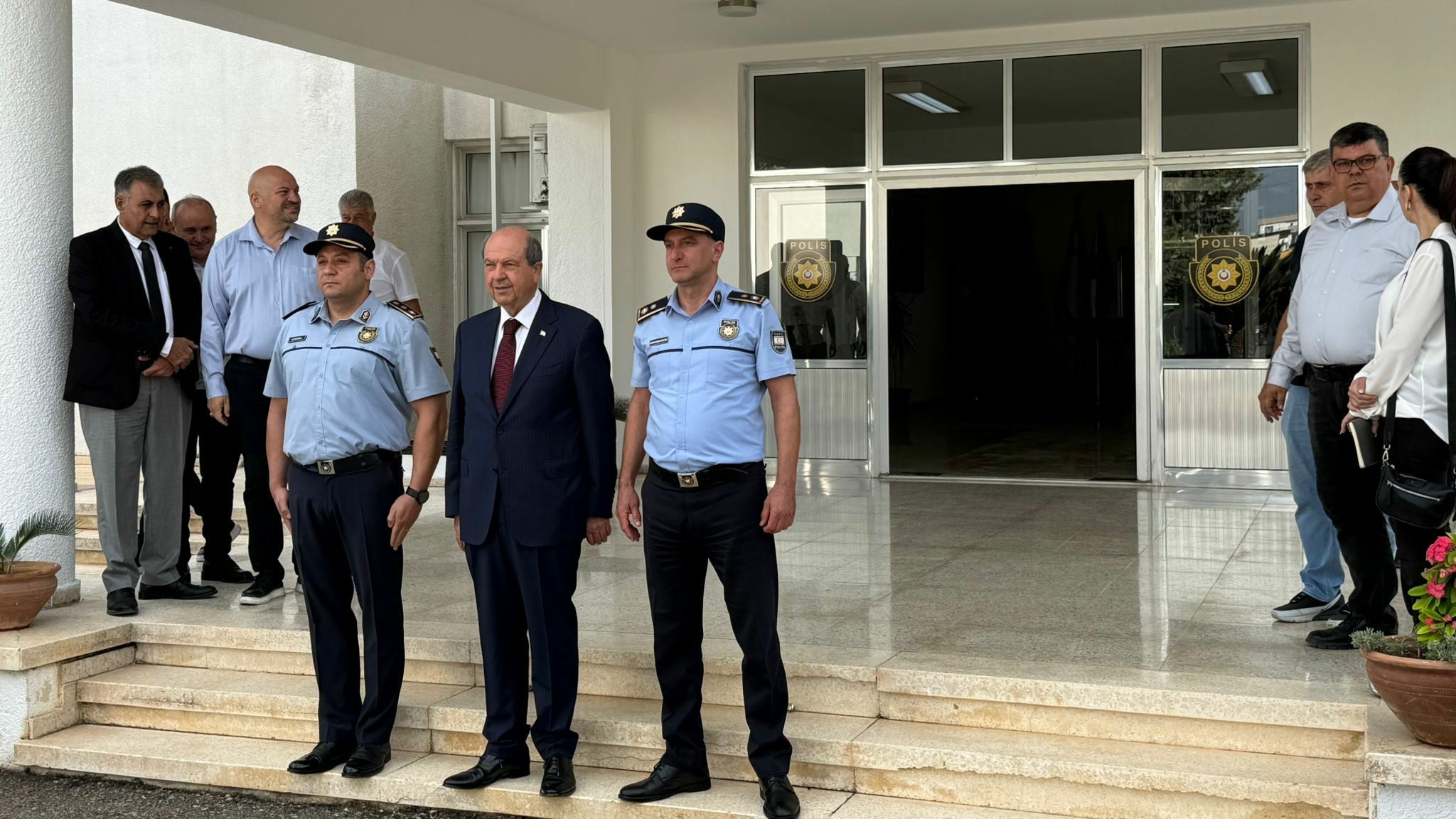 Ziyareti kapsamında saat 09.20 sıralarında Girne Polis Müdürlüğü’ne giden Tatar’ı burada Girne Polis Müdürü Aziz Nizamoğlu karşıladı.