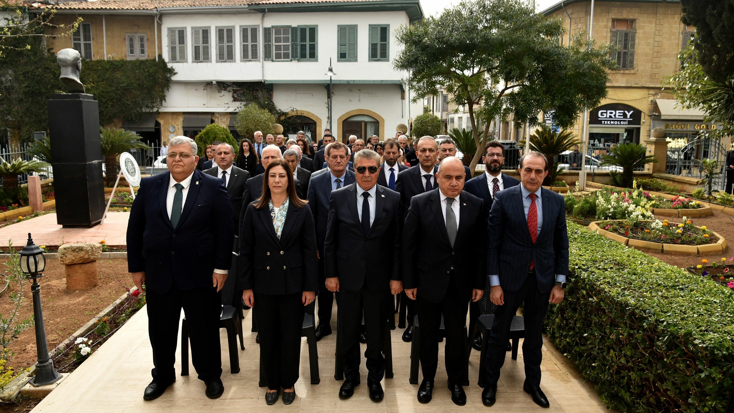 Konuşmalardan sonra ise Kıbrıs Vakıflar İdaresi Genel Müdürü Mustafa Tümer, Evkaf bahçesindeki Atatürk Anıtı’na çelenk sundu.