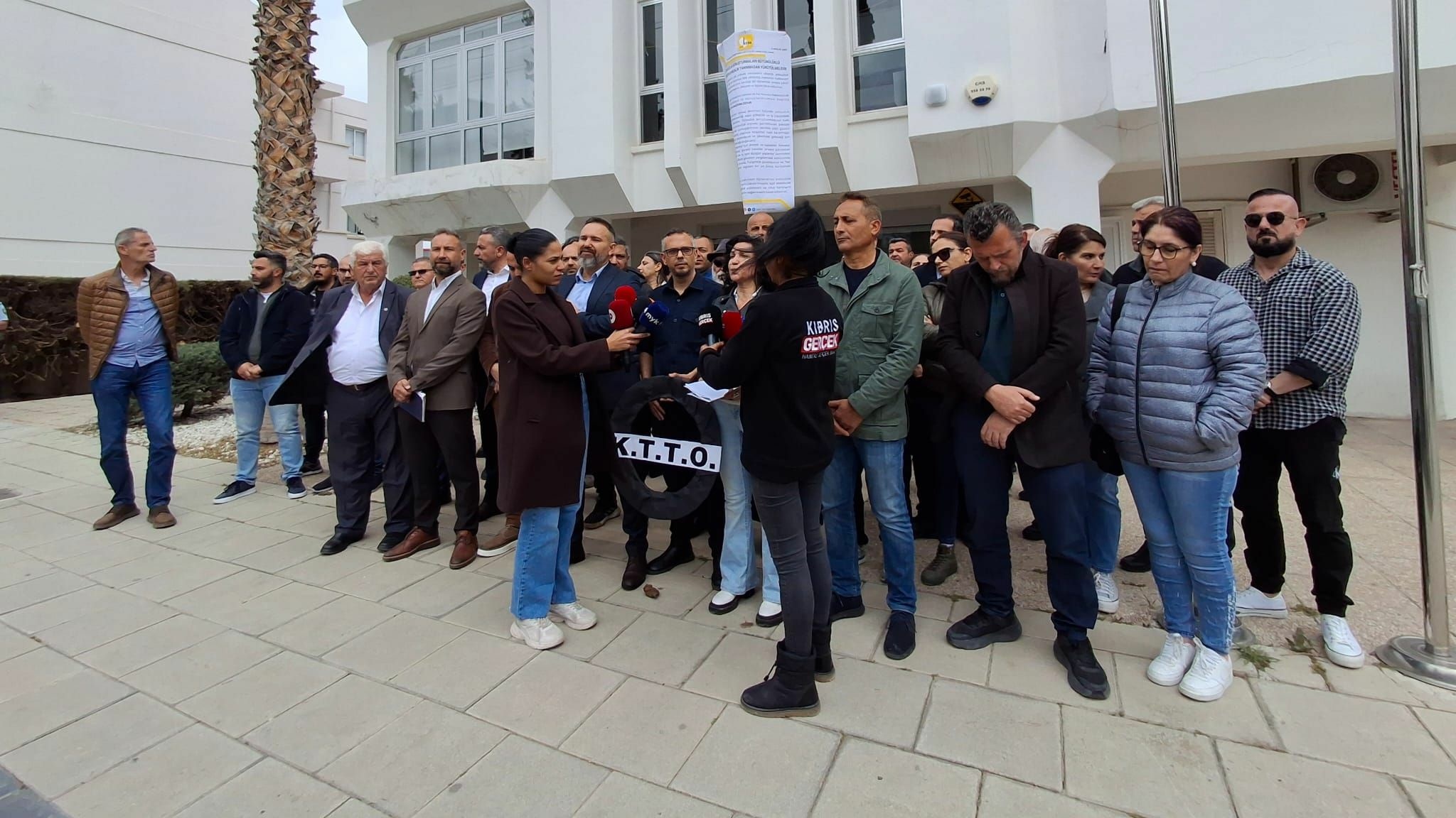 Kamuda örgütlü sendikalar, Kıbrıs Türk Ticaret Odası (KTTO) önünde protesto eylemi gerçekleştirdi.