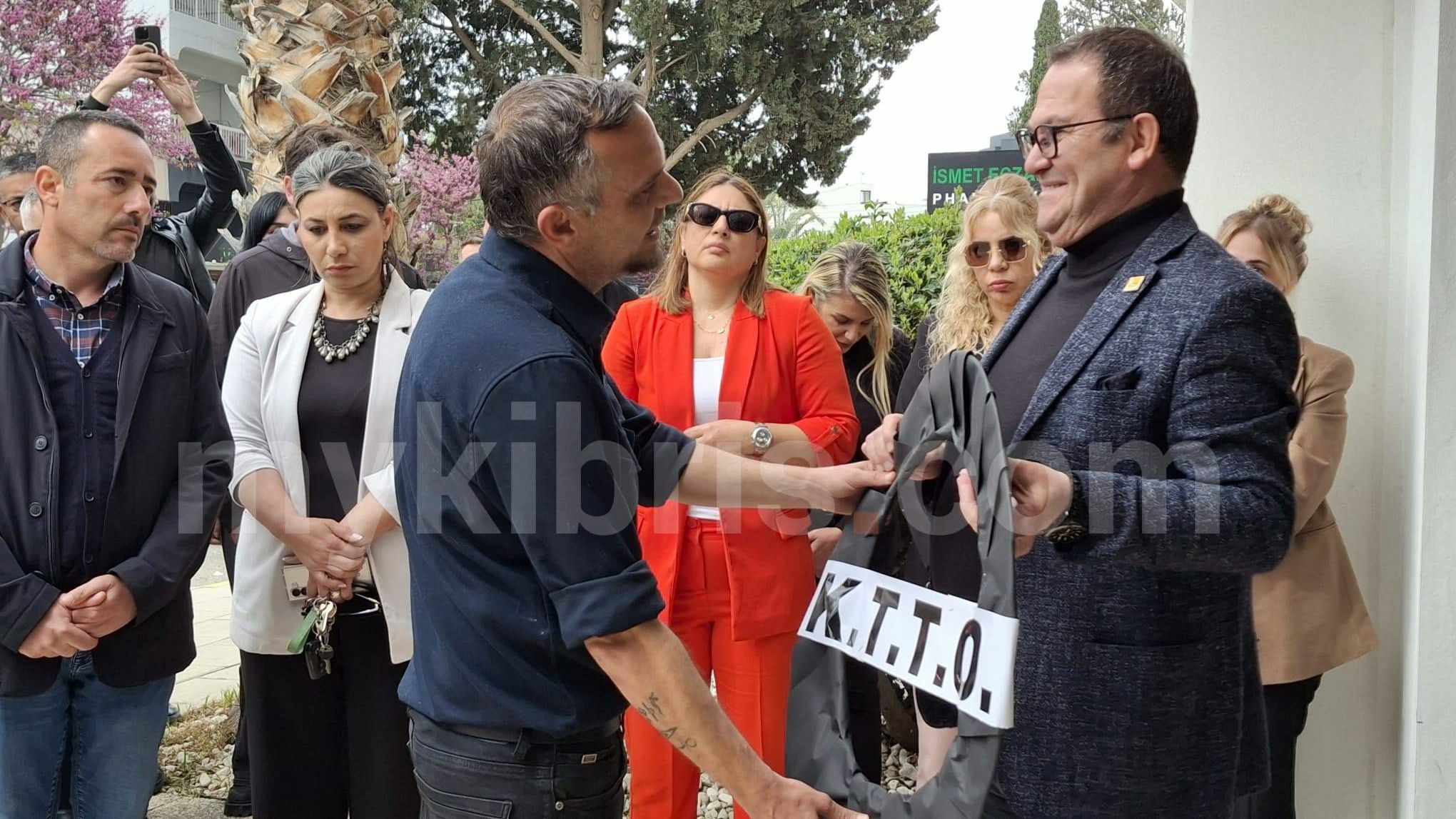 MYK Video: Grevleri eleştiren Ticaret Odası'na tepki gösteren sendikalar, bugün oda önünde eylemdeydi. Eylem sırasında sendikacılar kendilerine uzatılan gülleri reddederken, KTTO Başkanı Deniz'e siyah çelenk verildi. #MYKHaber #KKTC #gül #siyahçelenk pic.twitter.com/jiTbJUzQh6
