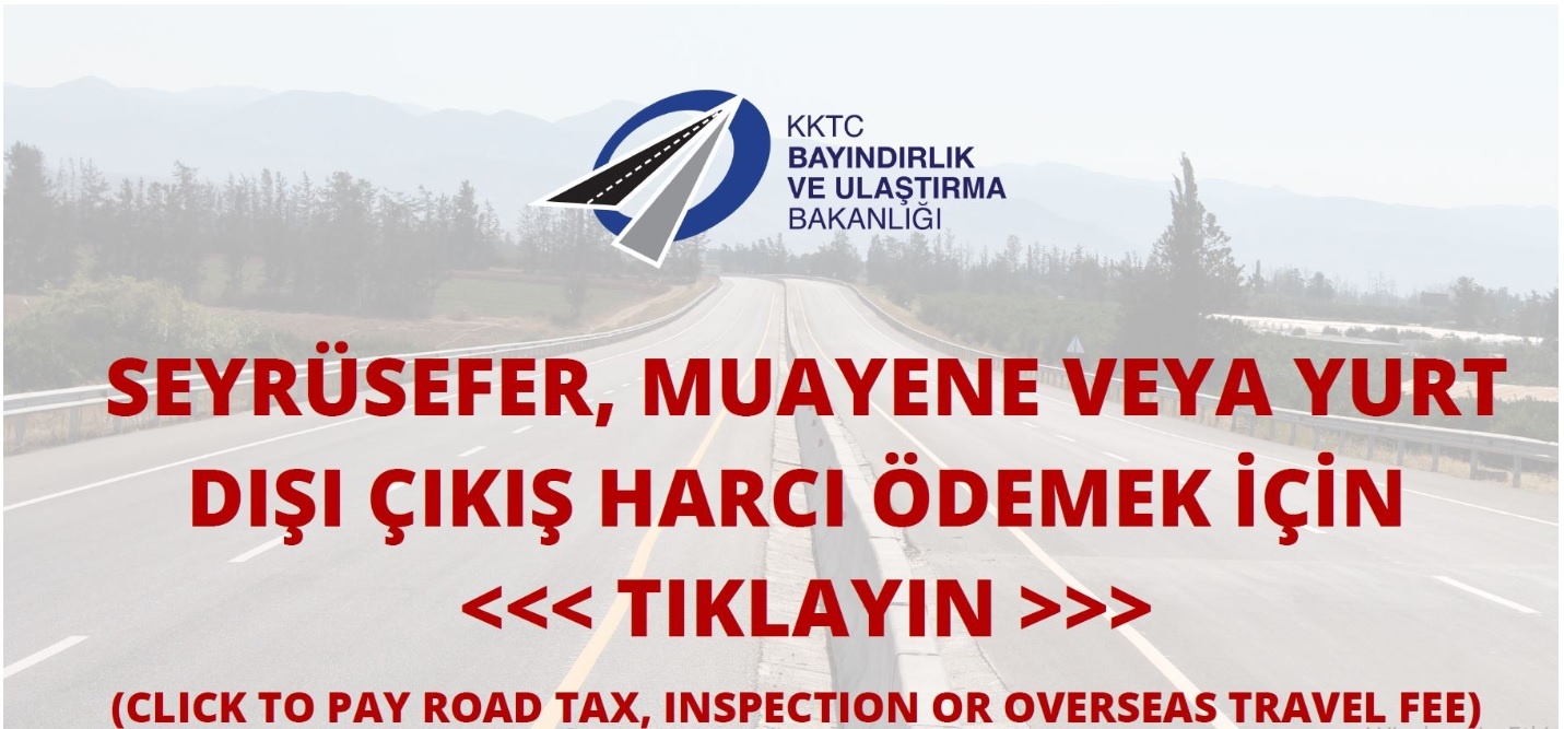 Bayındırlık ve Ulaştırma Bakanlığı’na bağlı Trafik Dairesi tarafından yapılan açıklamaya göre, muayene ücretlerini kredi kartıyla, internet üzerinden ödemek isteyen araç sahipleri, Bayındırlık ve Ulaştırma Bakanlığı’nın resmi internet sitesi olan www.bub.gov.ct.tr adresinin açılış sayfasında "SEYRÜSEFER, MUAYENE VEYA YURT DIŞI ÇIKIŞ HARCI ÖDEMELERİ İÇİN TIKLAYIN" görseline tıklayarak işlemlerini gerçekleştirebilecek.