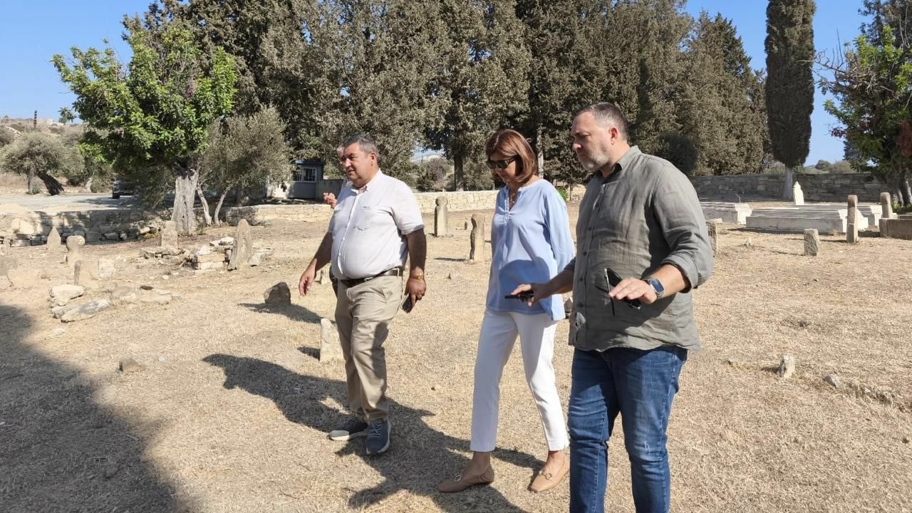 Temaslarda bulunmak üzere adaya gelen Birleşmiş Milletler (BM) Genel Sekreteri’nin Kıbrıs Kişisel Temsilcisi Maria Angela Holguin, Kültürel Miras Teknik Komitesi tarafından yenilenen mezarlıkları ziyaret etti.