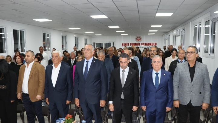 Bakanlık basın bürosundan yapılan açıklamaya göre, Şehit Turgut Ortaokulu 75'inci yıl vefa töreni ve Güniz Ced Konferans Salonu'nun açılış töreni Bakan Nazım Çavuşoğlu'nun katılımıyla yapıldı.