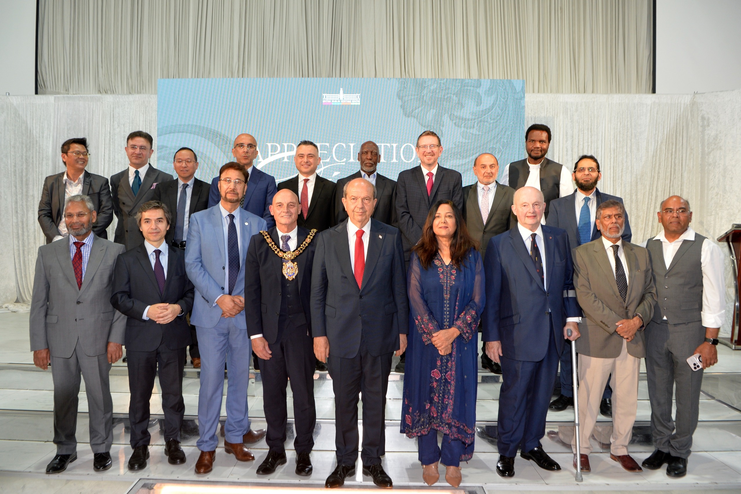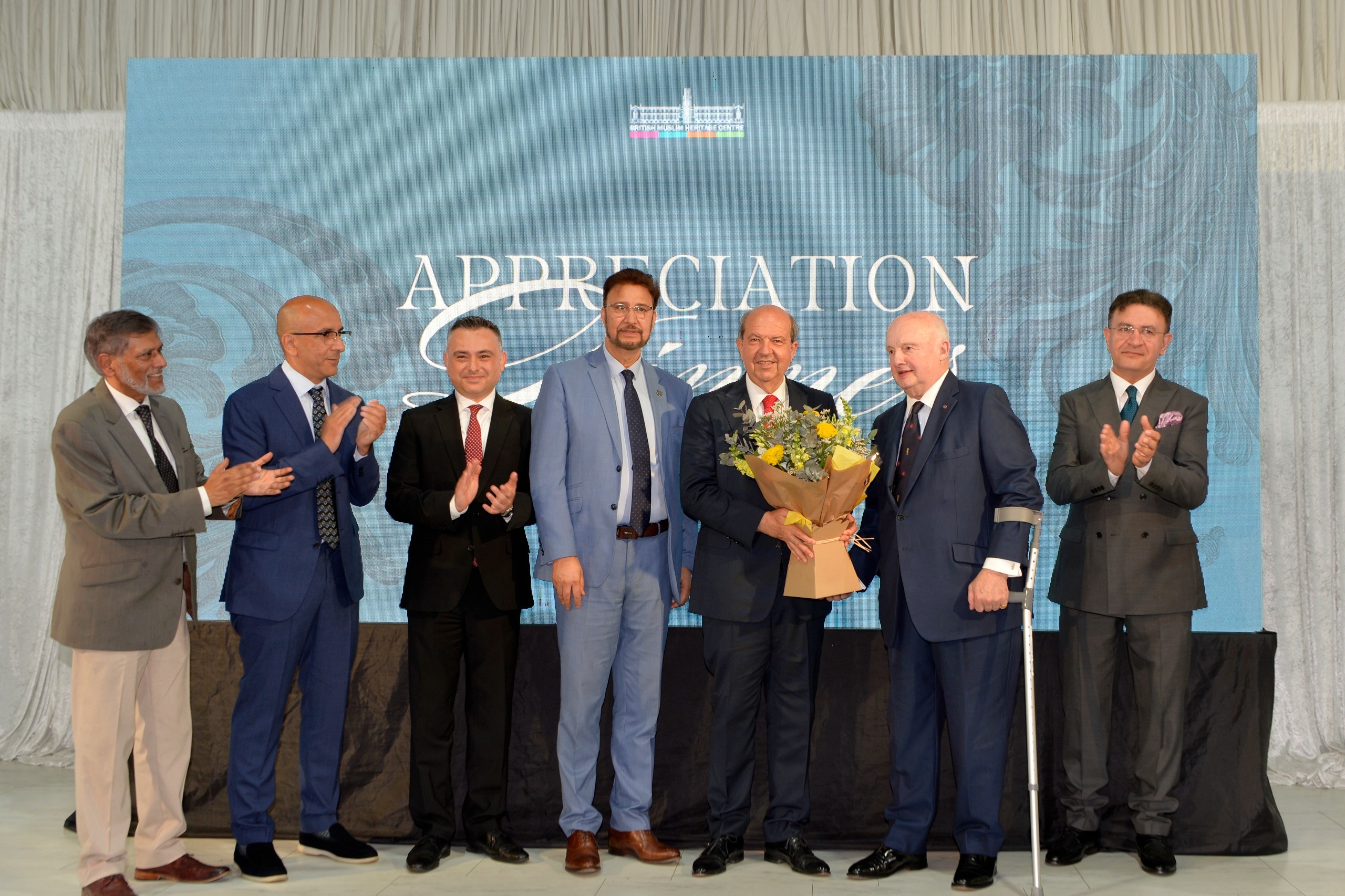 Cumhurbaşkanı Ersin Tatar, İngiltere Manchester'daki İngiliz Miras Merkezi (BMHC) tarafından düzenlenen bir etkinliğe onur konuğu olarak katıldı.