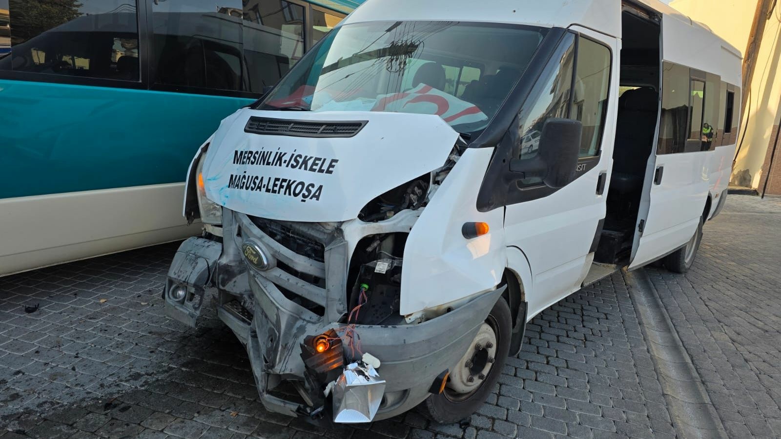 İskele Belediye Binası önünde bu sabah meydana gelen kazada iki otobüs çarpıştı.