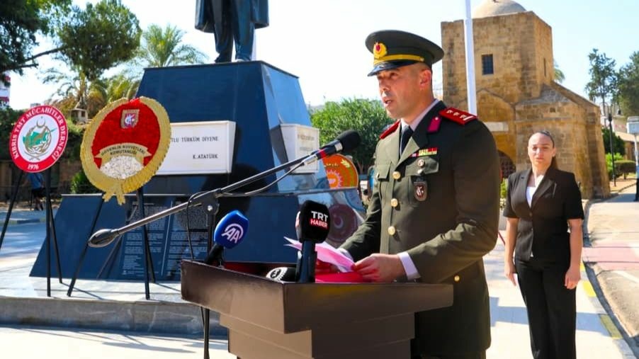 Atatürk Anıtı’ndaki törende günün anlam ve önemine ilişkin bir konuşma yapan Kurmay Yüzbaşı Nusret Demircan, Kıbrıs Adası’nın Osmanlı İmparatorluğu tarafından fethinin 454’üncü, Türk Mukavemet Teşkilatı’nın (TMT) 67’nci ve Güvenlik Kuvvetleri Komutanlığı’nın (GKK) 49’uncu kuruluş yıl dönümünü aynı günde kutlamanın mutluluğunu yaşadıklarını söyledi.