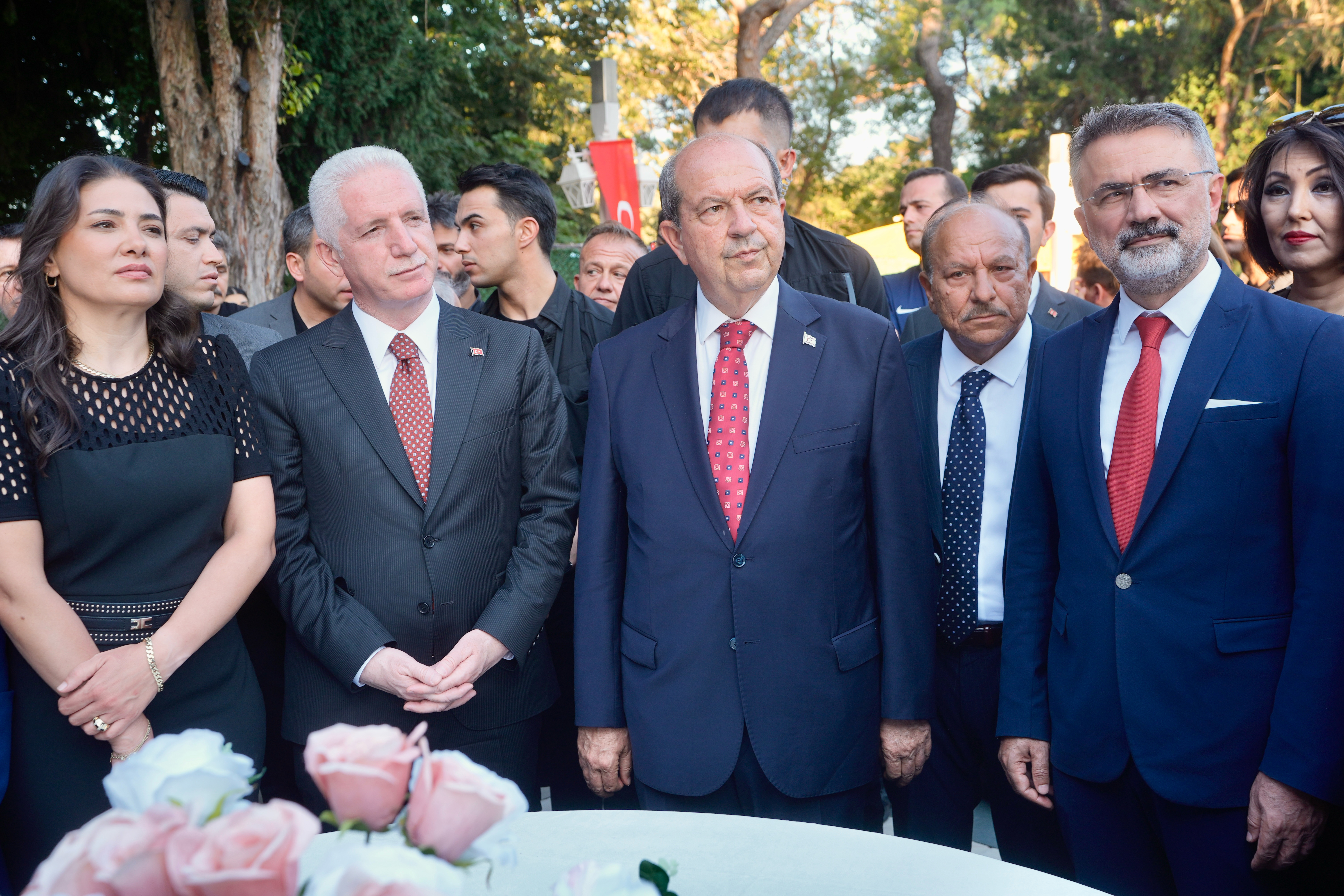 Burada konuşan Cumhurbaşkanı Tatar, 15 Kasım'da KKTC'nin kuruluşunun 42'nci yıl dönümünü kutlayacaklarını belirterek, "Doğu Akdeniz'de hep birlikte yedi düvele karşı bir destan yazdık. Bu sadece Kıbrıslı Türklerin kendi bekası ve güvenliği için önemli değil aynı zamanda ana vatanımız Türkiye Cumhuriyeti'nin, İskenderun'dan Ege Adaları'na kadar 2 bin kilometre sahil şeridiyle Akdeniz'e en uzun cephesi olan Türkiye Cumhuriyeti'nin, mavi vatanın kalbinde kendi güvenliğidir, kendi onurudur, kendi milli direncidir." ifadelerini kullandı.