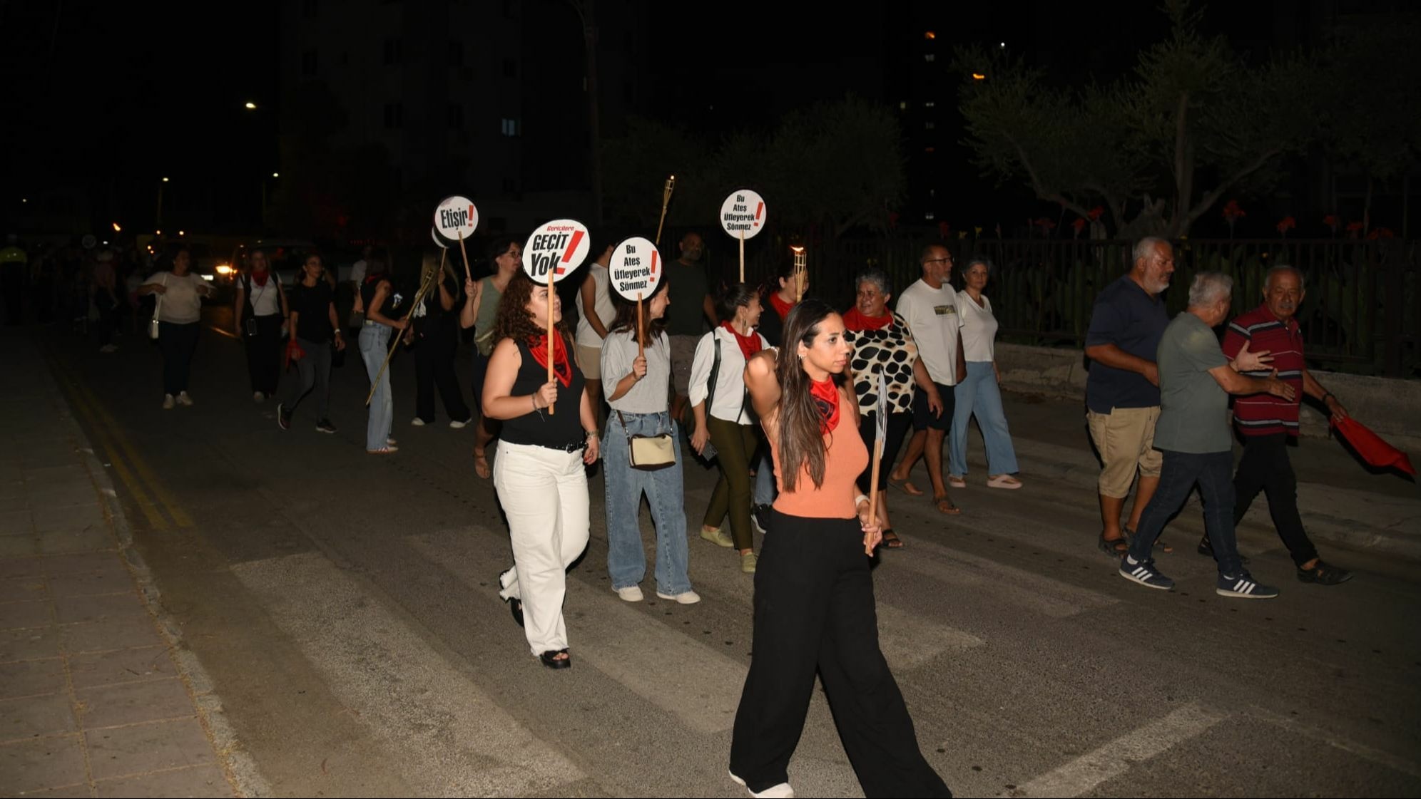 Yürüyüşte, “Dayatmalara, yoksullaştırmaya, gericiliğe geçit yok” ve “İrademize sahip çıkıyoruz” yazılı pankartlar açıldı; “Karanlığa geçit yok”, “Kıbrıs laiktir, laik kalacak” sloganları atıldı.