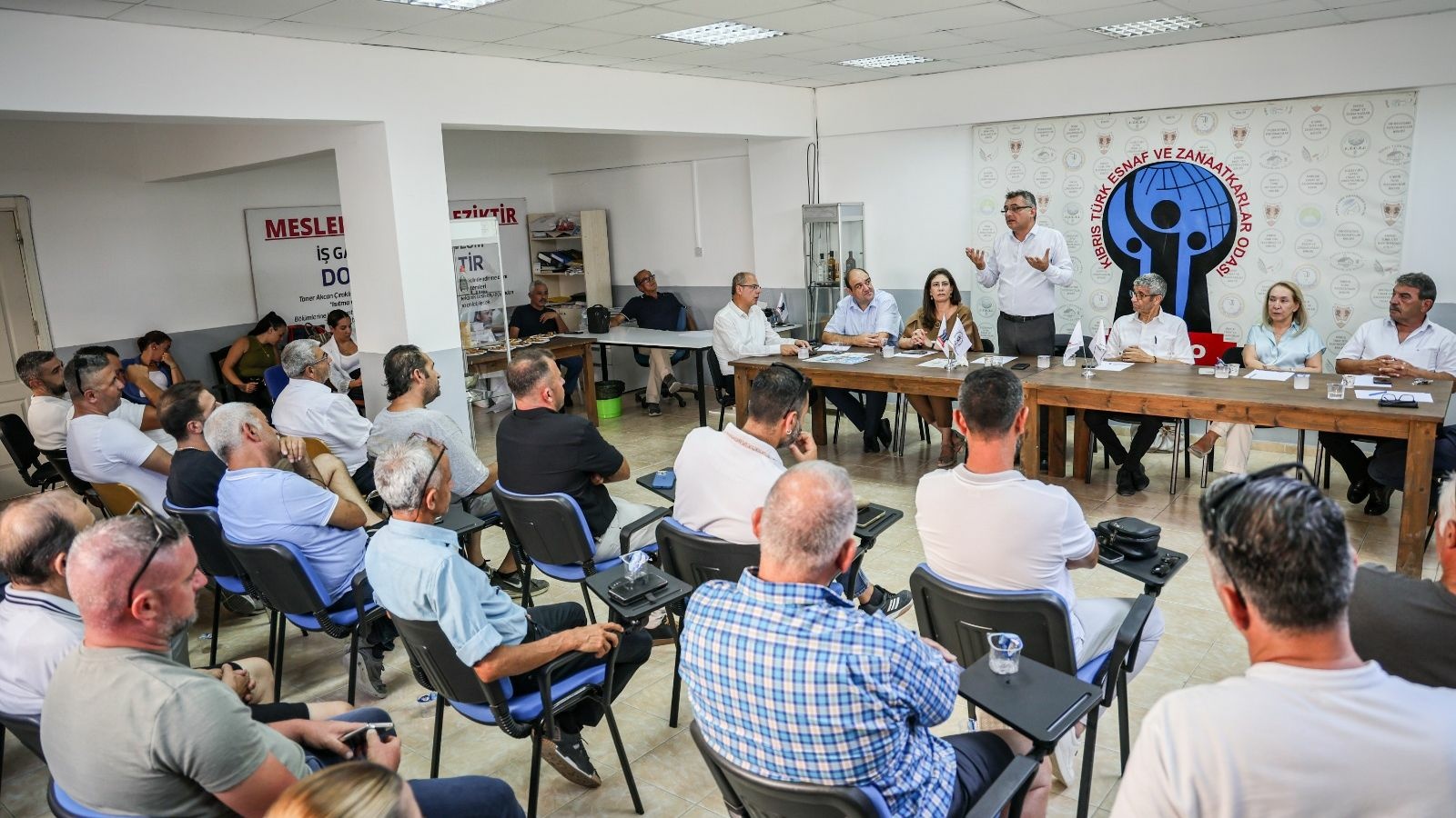 Cumhurbaşkanlığına aday olacağını açıklayan Cumhuriyetçi Türk Partisi (CTP) Genel Başkanı Tufan Erhürman, Kıbrıs Türk Esnaf ve Zanaatkarlar Odası’nda (KTEZO) bir grup esnafla bir araya geldi.