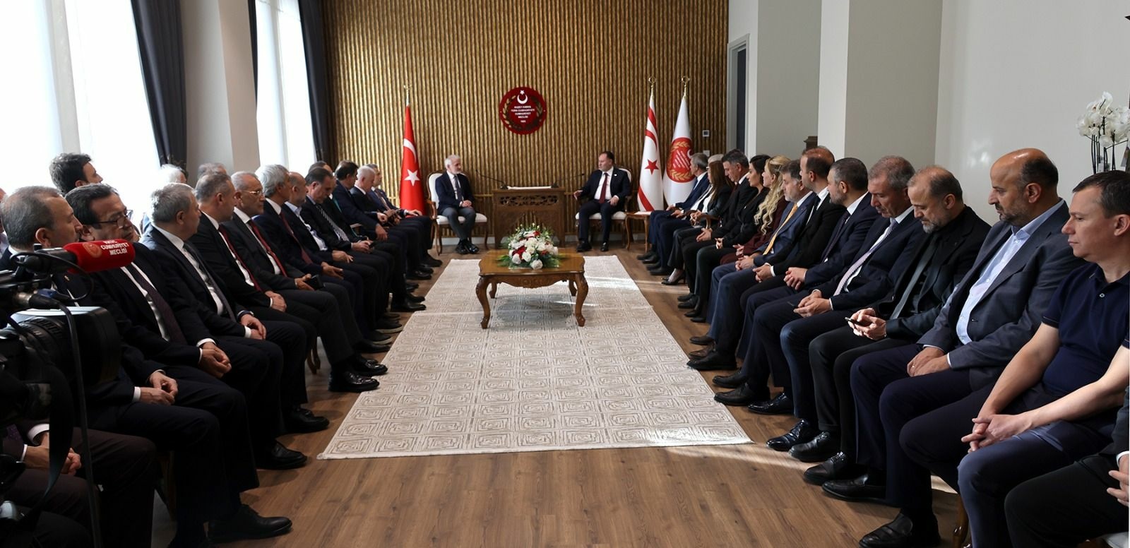 Meclis'ten verilen bilgiye göre, 15 Kasım Cumhuriyet Bayramı, KKTC'nin 42'nci kuruluş yıl dönümü kutlamaları çerçevesinde adaya gelen heyeti kabulünde konuşan Öztürkler, Anavatan Türkiye’den kalabalık bir milletvekili grubunun gelmesinden duyduğu memnuniyeti dile getirdi.