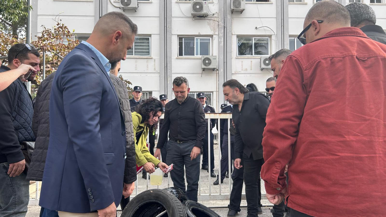 KKTC’de kamuda örgütlü beş sendika, ekonomik koşullar ve sosyal hak taleplerine yanıt verilmediği gerekçesiyle Maliye Bakanlığı önünde lastik yakarak eylem yaptı.
