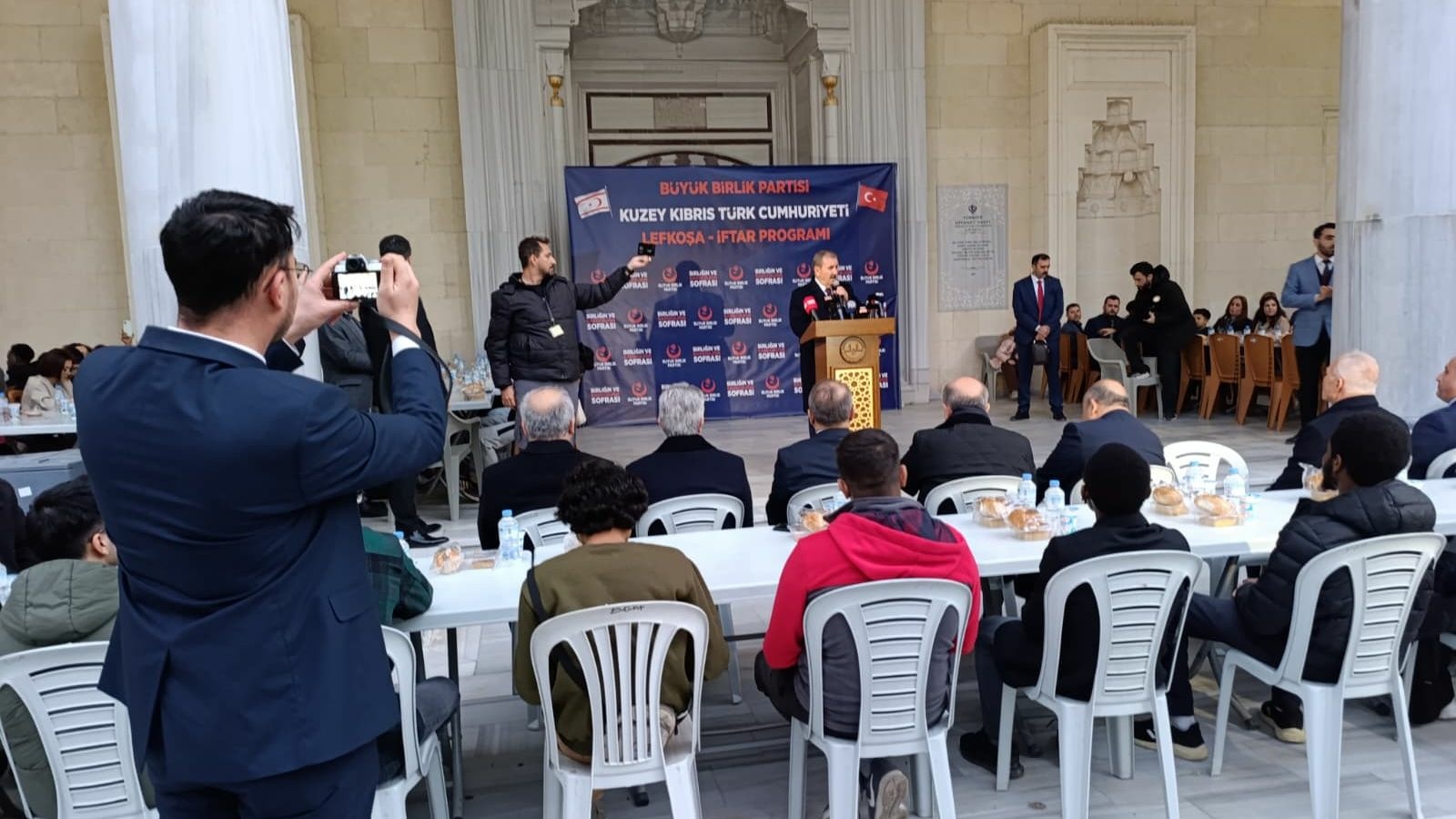 Büyük Birlik Partisi KKTC temsilciliğinin Hala Sultan Camii’nde düzenlediği iftar programına 5’inci Cumhurbaşkanı Tatar, eski Meclis Başkanı Töre, YDP Genel Başkanı Erhan Arıklı ile Büyükelçi Ali Murat Başçeri katıldı.