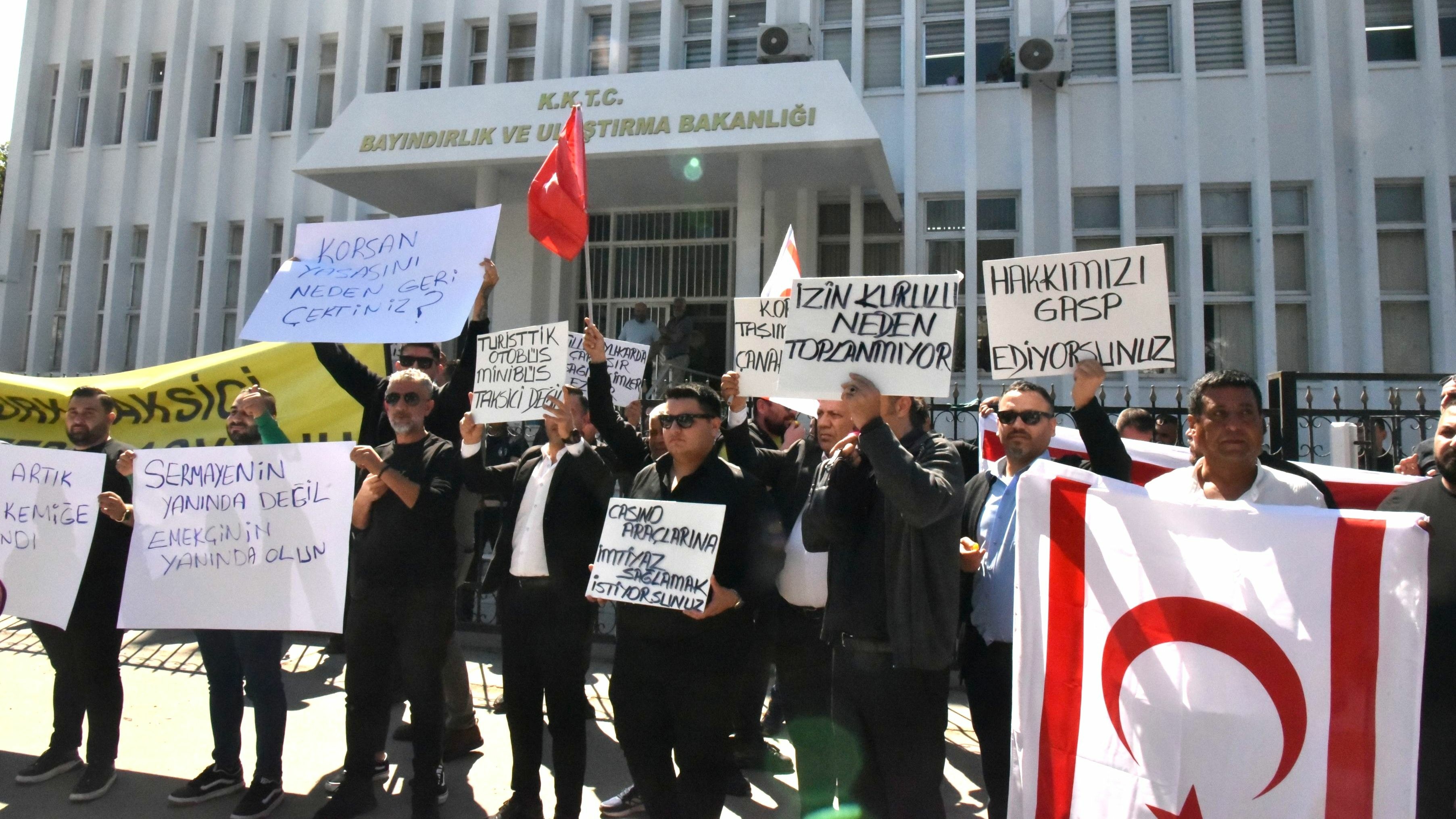 Kıbrıs Türk Taksici Dernekleri Federasyonu, "sektörde yaşanan sorunlara çözüm üretilemediği" gerekçesiyle Bayındırlık ve Ulaştırma Bakanlığı önünde eylem ve basın açıklaması yaptı.
