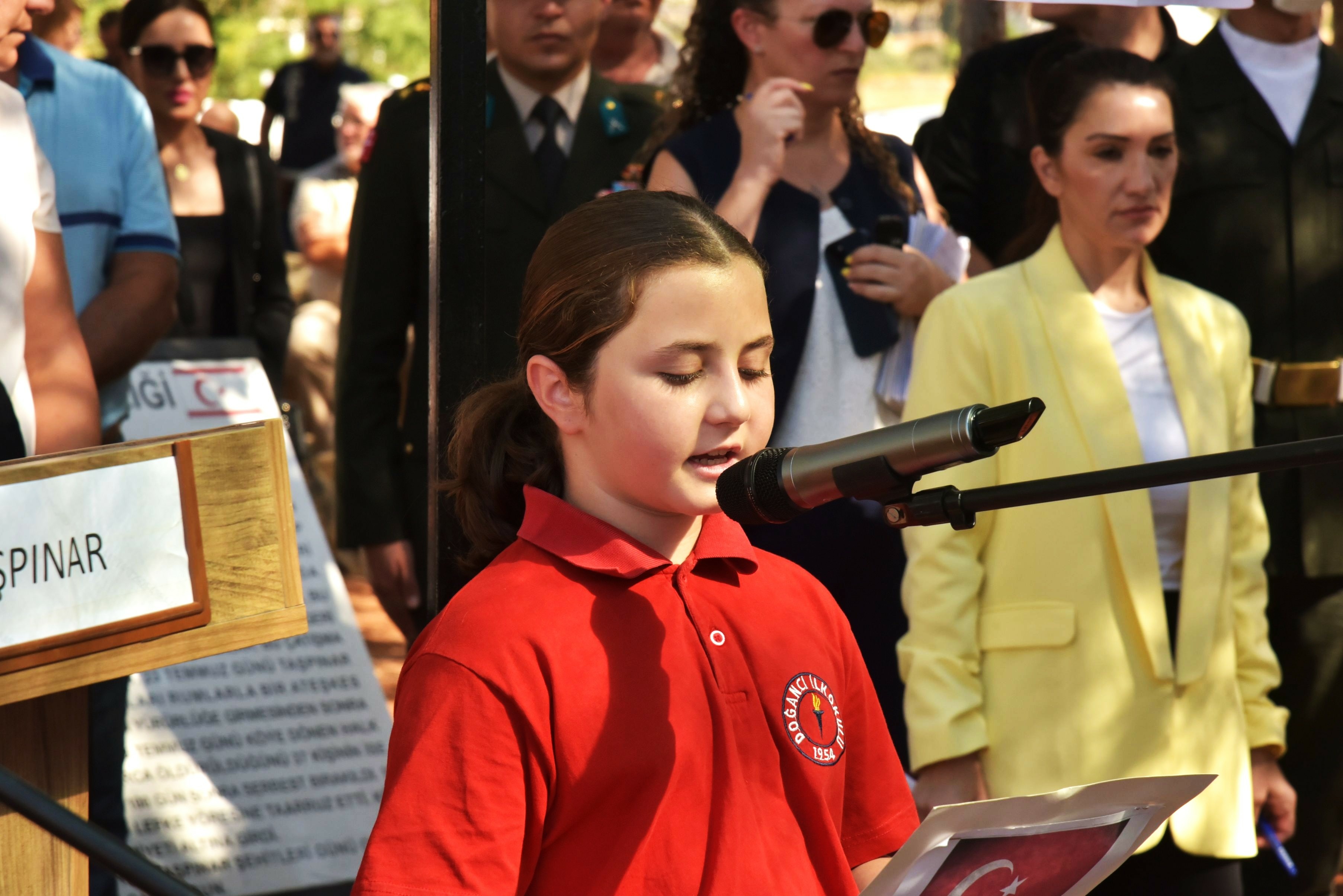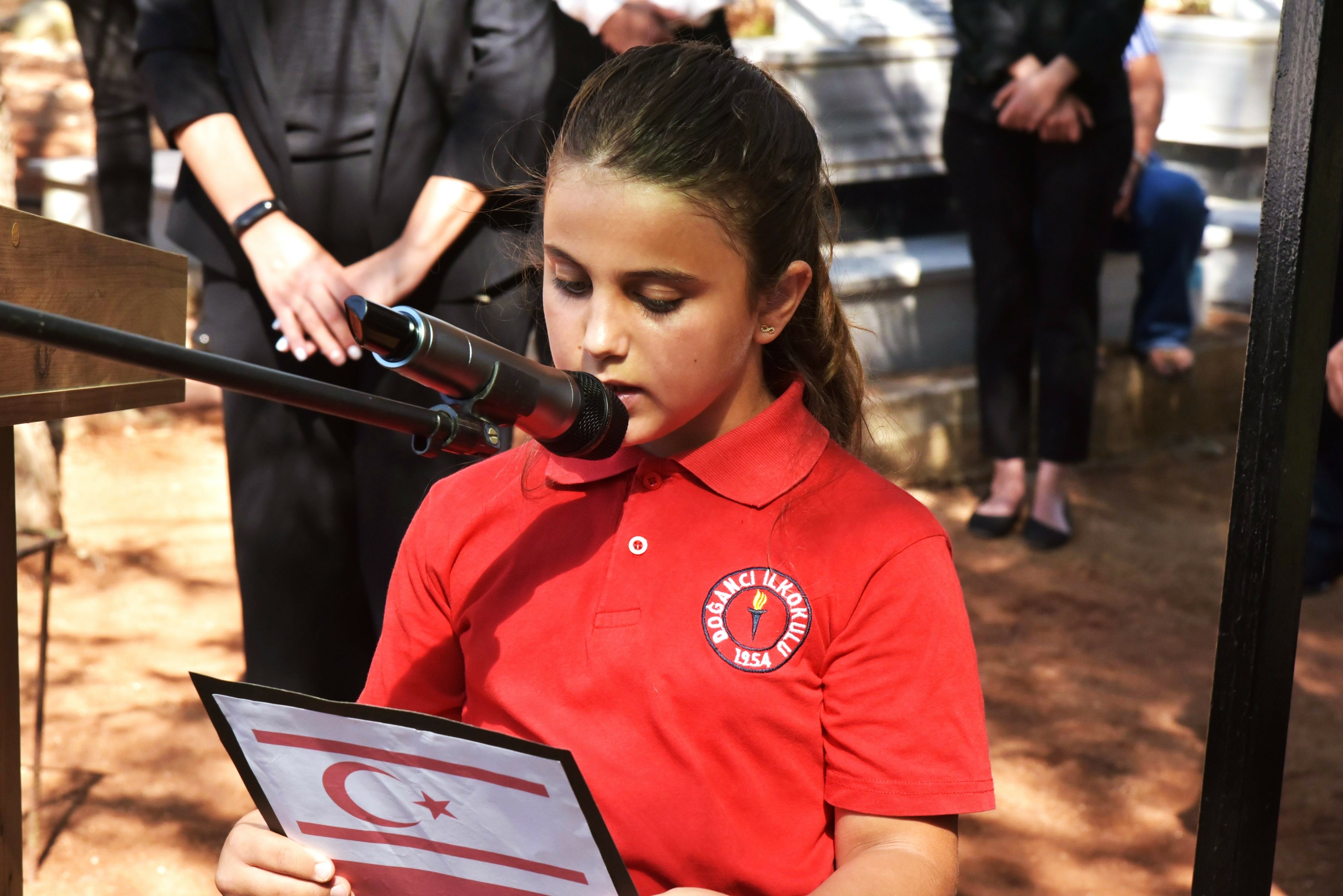 Protokol sırasına göre çiçeklerin kabirlere sunulmasıyla başlayan, saygı duruşu, saygı atışı ve İstiklal Marşı ile bayrakların göndere çekilmesinin ardından Şehitlik Özel Defteri'nin imzalandığı törende, Doğancı İlkokulu öğrencileri Laren Alpun ve Aytül Arslan “Bayrak” ve “Benim İki Bayrağım Var” adlı şiirleri okudu.