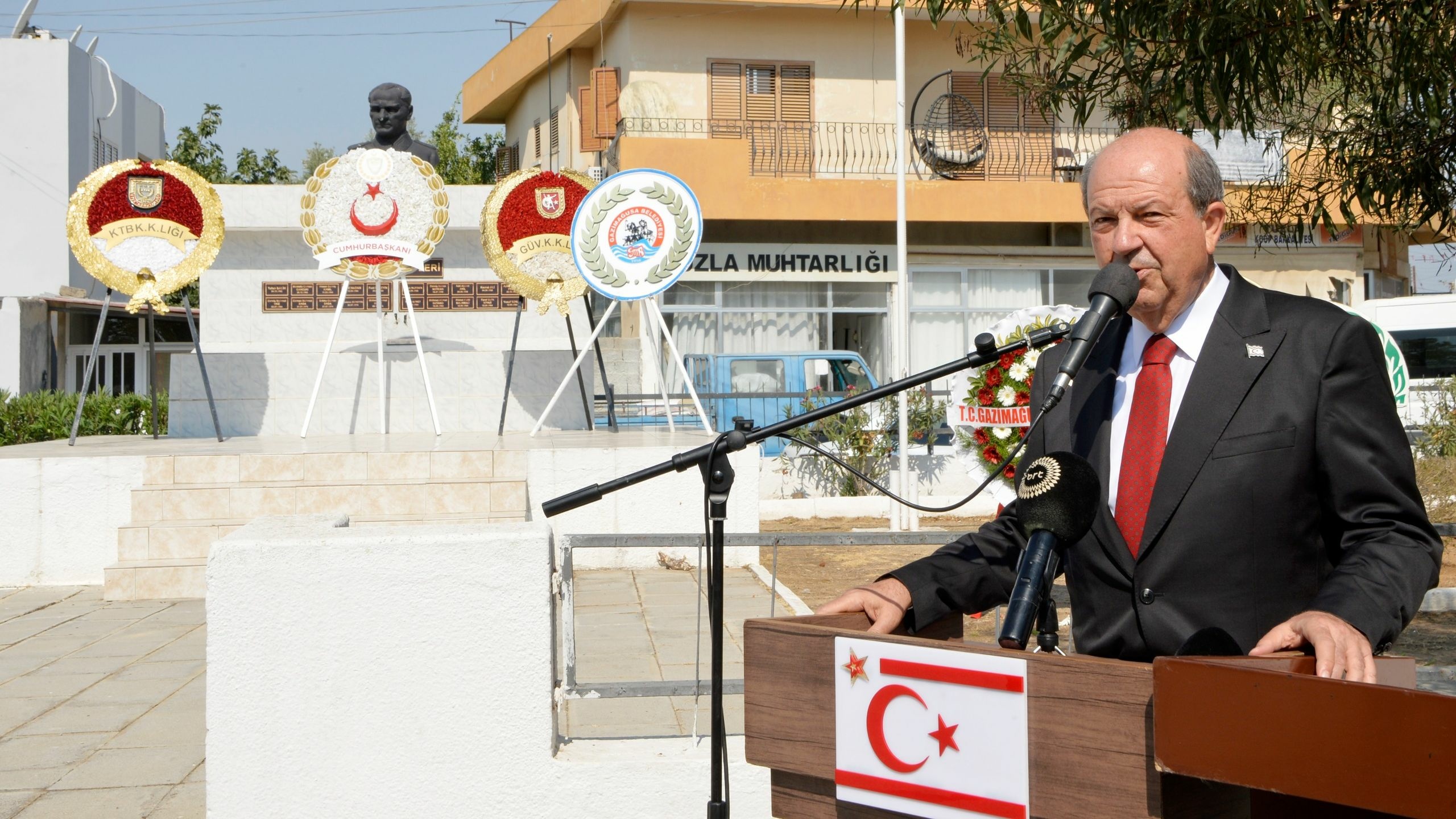 Cumhurbaşkanı Ersin Tatar da törende bir konuşma yaptı. Tatar, bugün huzur ve güven içinde yaşanıyorsa, bunun Anavatan Türkiye'nin desteği ve şehitlerin fedakârlıkları sayesinde olduğunu ifade etti.