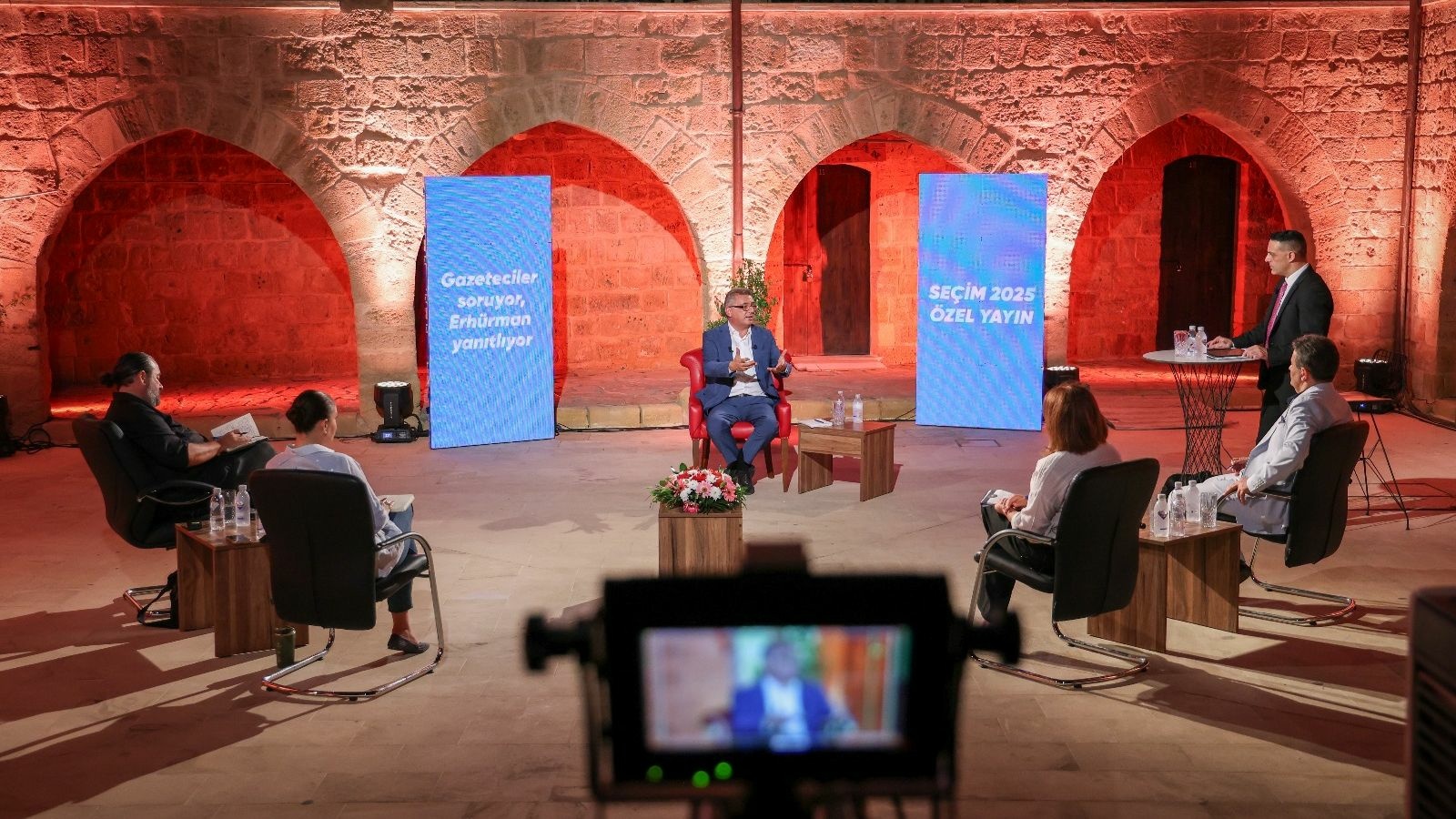 Yayında Erhürman, gazetecilerin yönelttiği sorulara cevap vererek, seçim çalışmaları ve siyasi gündeme dair görüşlerini aktardı.