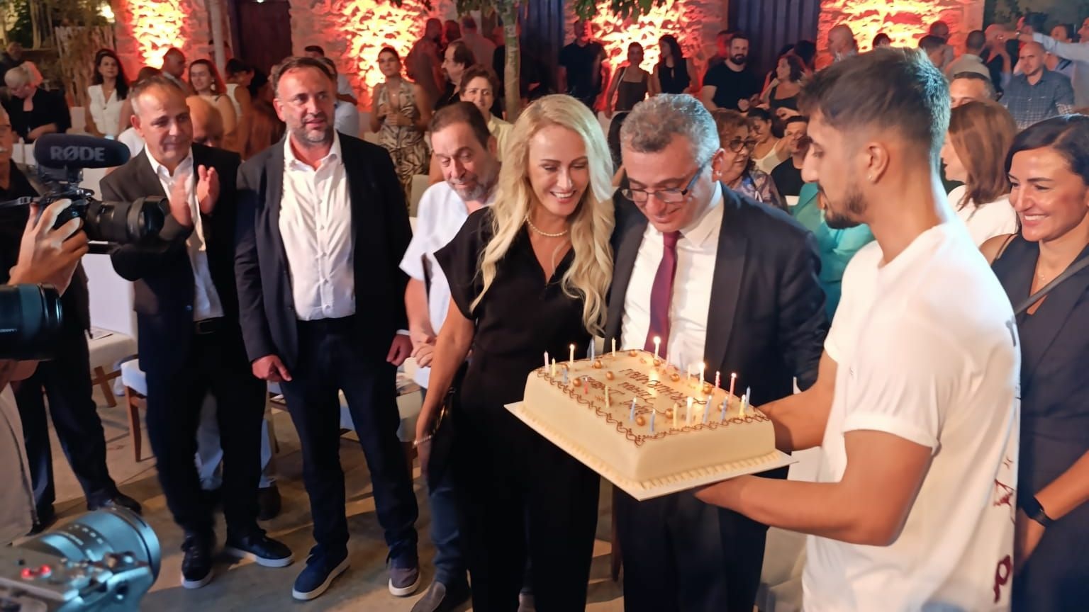 CTP Cumhurbaşkanı Adayı Tufan Erhürman'a, Lefkoşa’da düzenlenen “Vizyon 2025-2030: Geleceğe İmza” etkinliği sırasında doğum günü sürprizi yapıldı. Erhürman, 55'inci yaş pastasını eşi Nilden Bektaş Erhürman ile birlikte kesti.