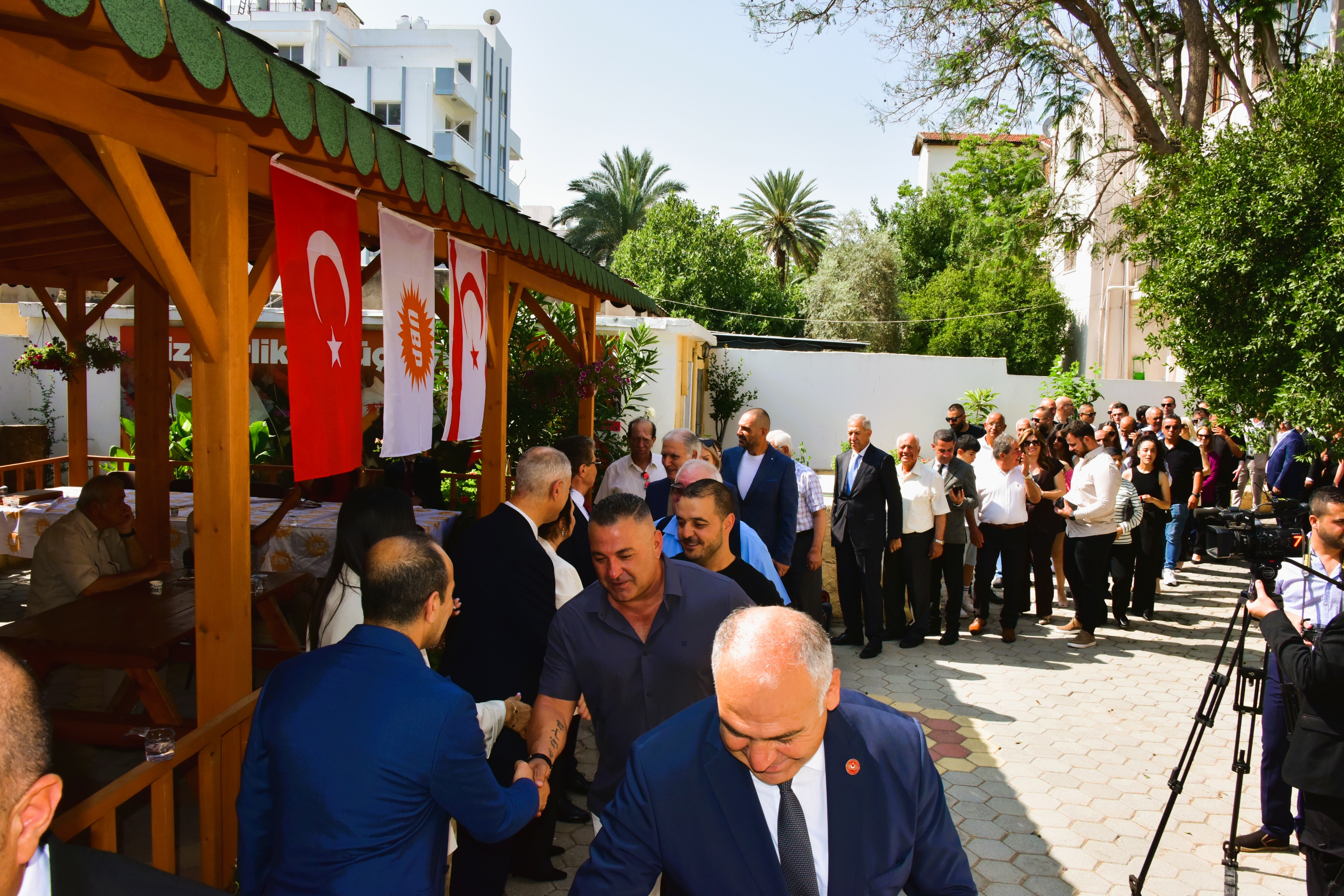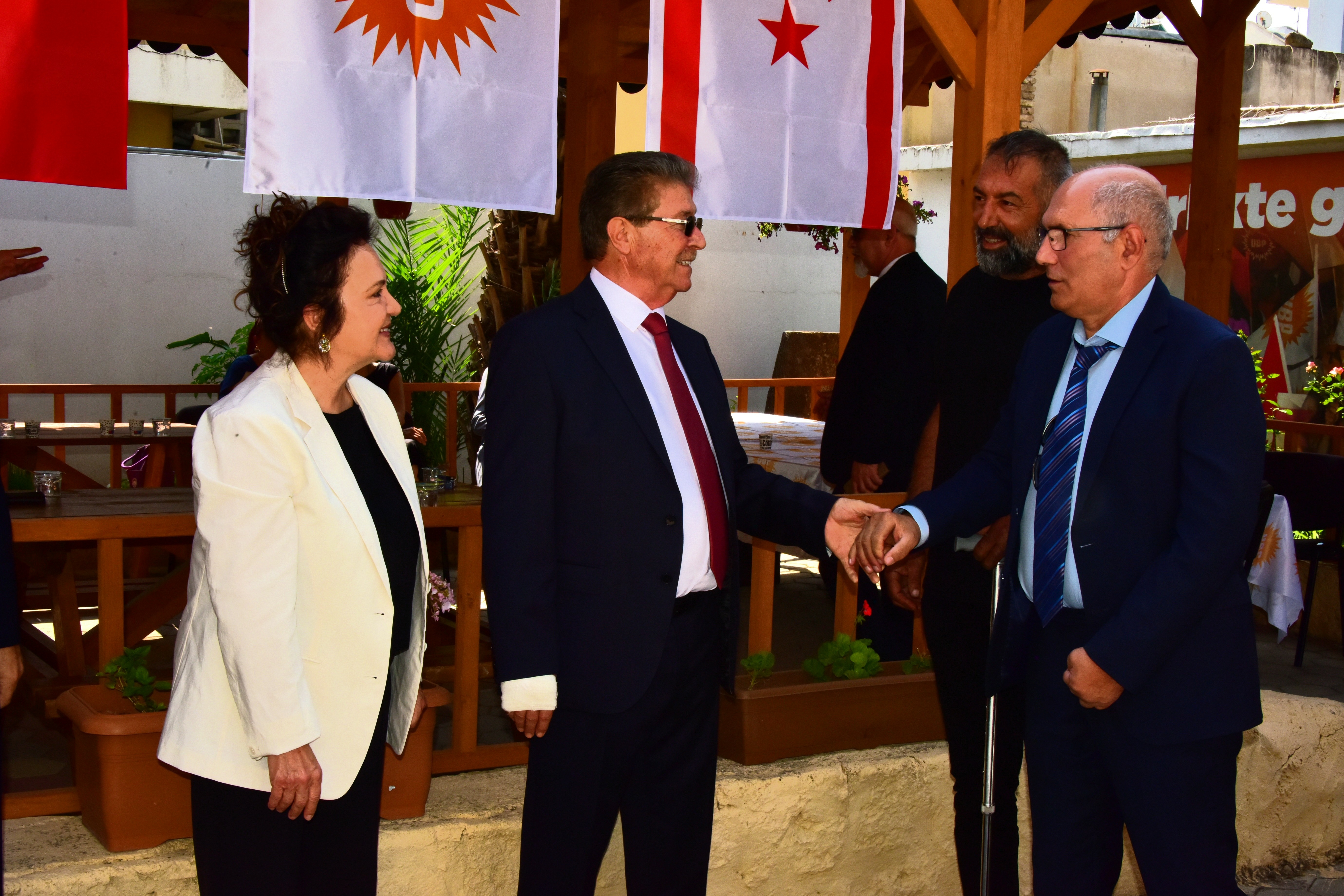 UBP’nin Köşklüçiftlik’teki Genel Merkezi’nde düzenlenen bayramlaşmada, Üstel’e eşi Zerrin Üstel ve UBP Genel Sekreteri Oğuzhan Hasipoğlu eşlik etti.