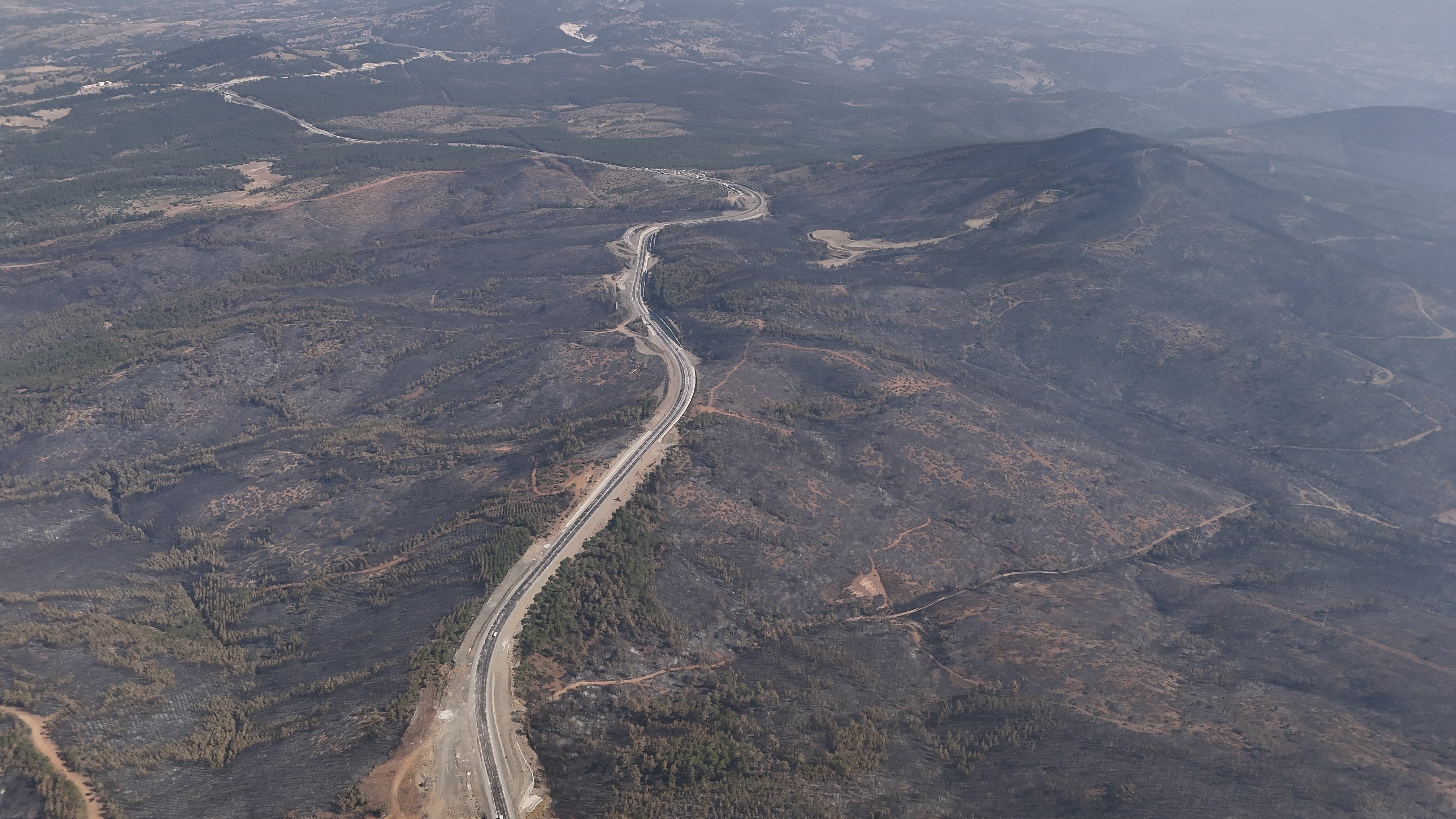Yangının devam ettiği alan, müdahale ekipleri tarafından açılan yollar ve konuşlanan arazözlerle çevrelendi. Böylece, yangının etrafı sarılmış oldu.