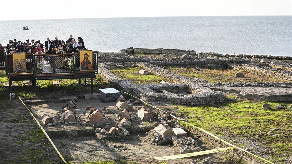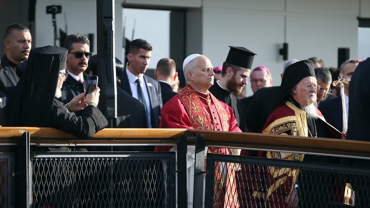 Fener Rum Patriği Bartholomeos ve yetkililerin eşlik ettiği Papa 14. Leo, batık bazilika kalıntısının olduğu bölgede düzenlenen ayine katıldı.