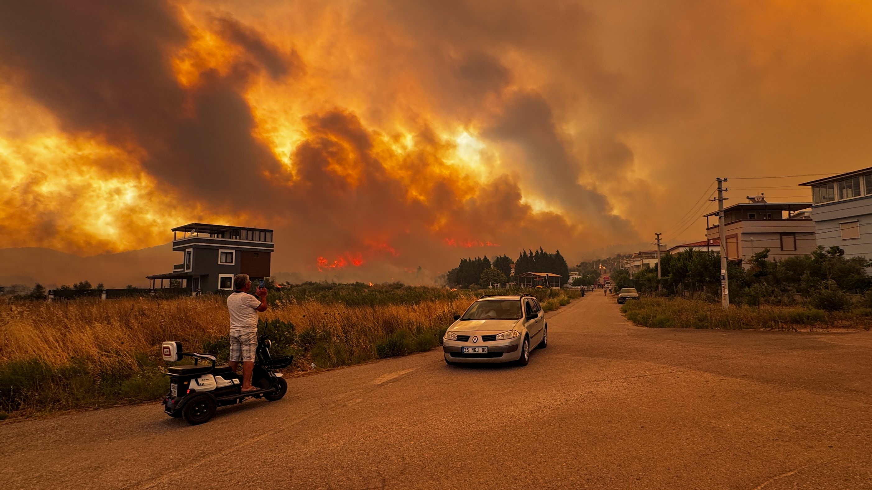 Birçok kişi araçlarını yangın bölgesinden çıkarmaya çalışıyor. Emniyet ekipleri de TOMA'larla yangına müdahale ediyor.