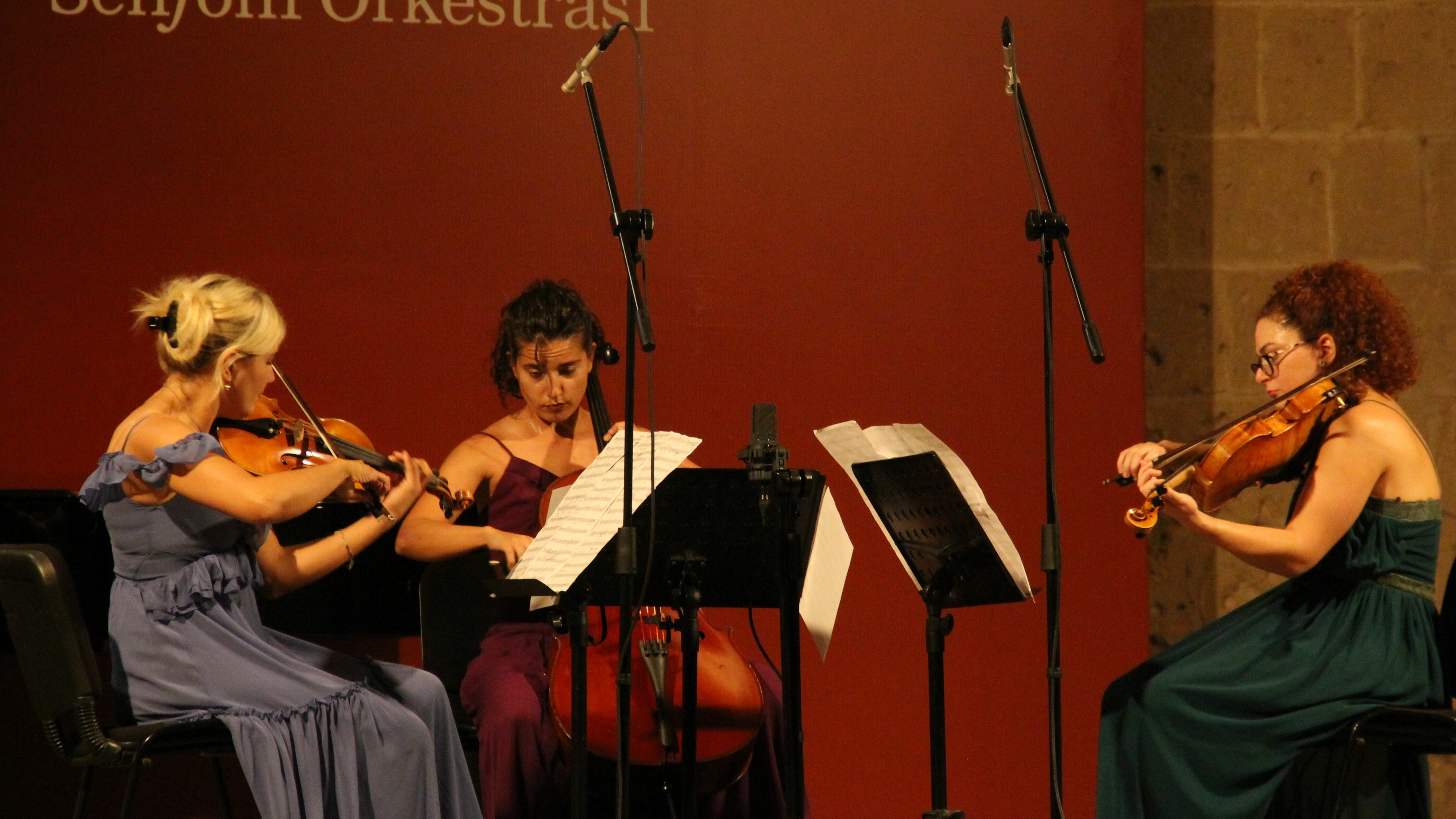 Covid-19 önlemleri çerçevesinde sınırlı sayıda izleyicinin alındığı ve sosyal mesafeli oturma düzeninin uygulandığı konsere, sanatseverler büyük ilgi gösterirken genç müzisyenler 19.yy.dan bugüne kadar çeşitli klasik bestecilerin yaylılar için yazdığı çeşitli eserler ve farklı tangoları icra ettiler.