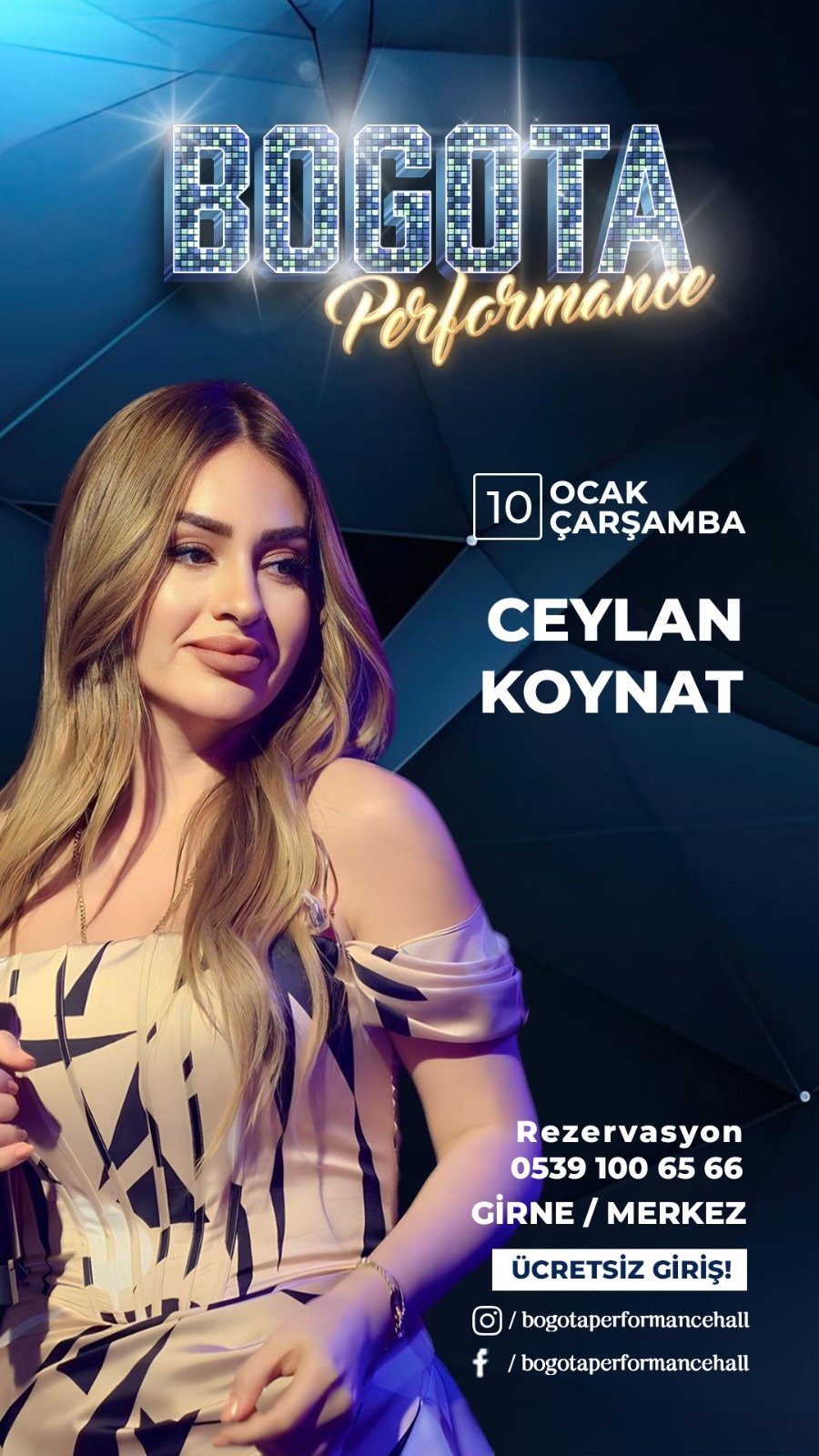 Girne'nin kalbinde yer alan Bogota Performance Hall, 10 Ocak Çarşamba gecesi Ceylan Koynat'ı ağırlıyor.
