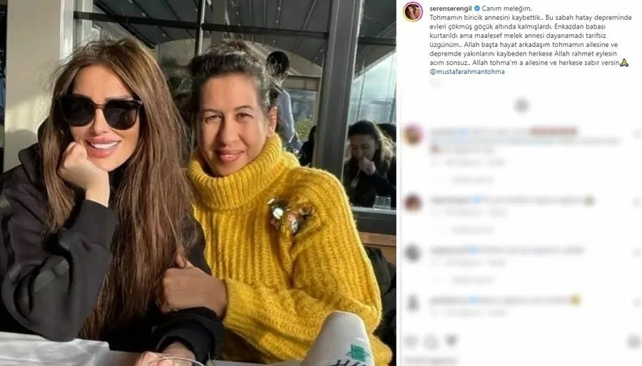 Seren Serengil ve sevgilisi Mustafa Rahman Tohma enkaz altında kalan ailesi için sosyal medyada yardım çağrısında bulunmuşlardı. Tohma’nın babası sağ çıkarılırken, annesi iç kanamadan vefat etti.