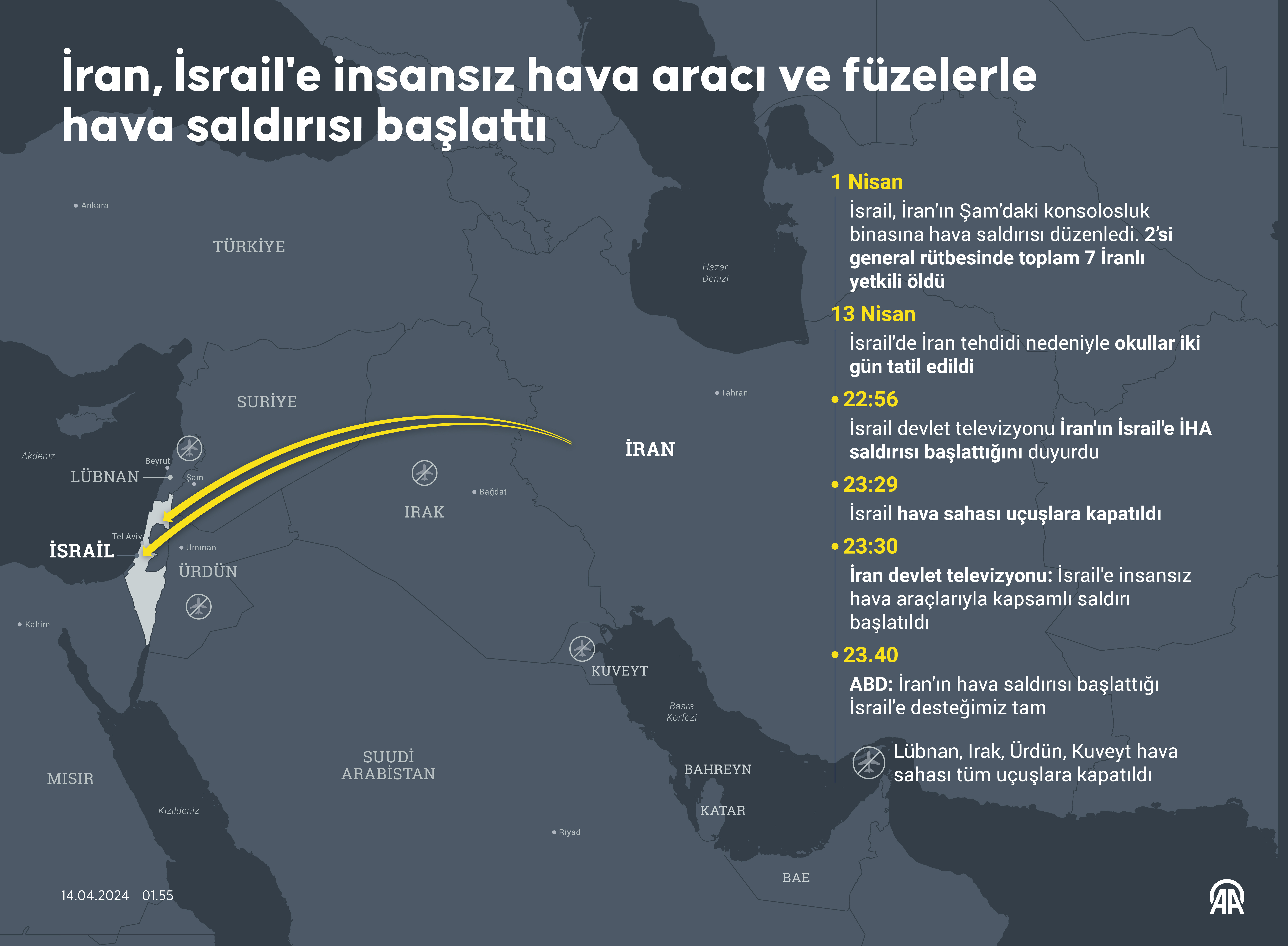 İran, dün akşam İsrail'e insansız hava aracı (İHA) saldırısı başlattı.