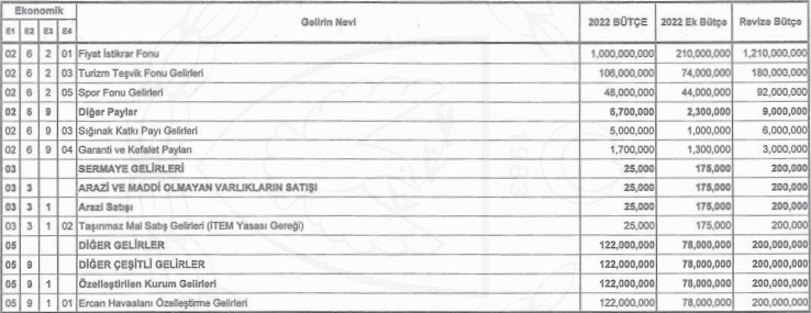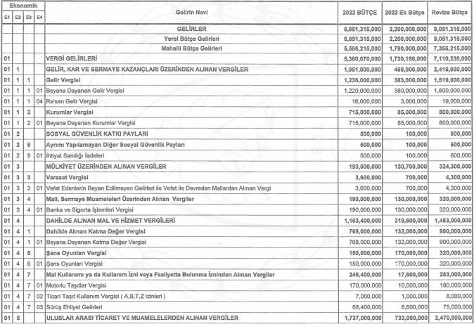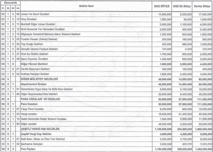 Yeniden belirlenen gelir kalemleri de şöyle oluştu: