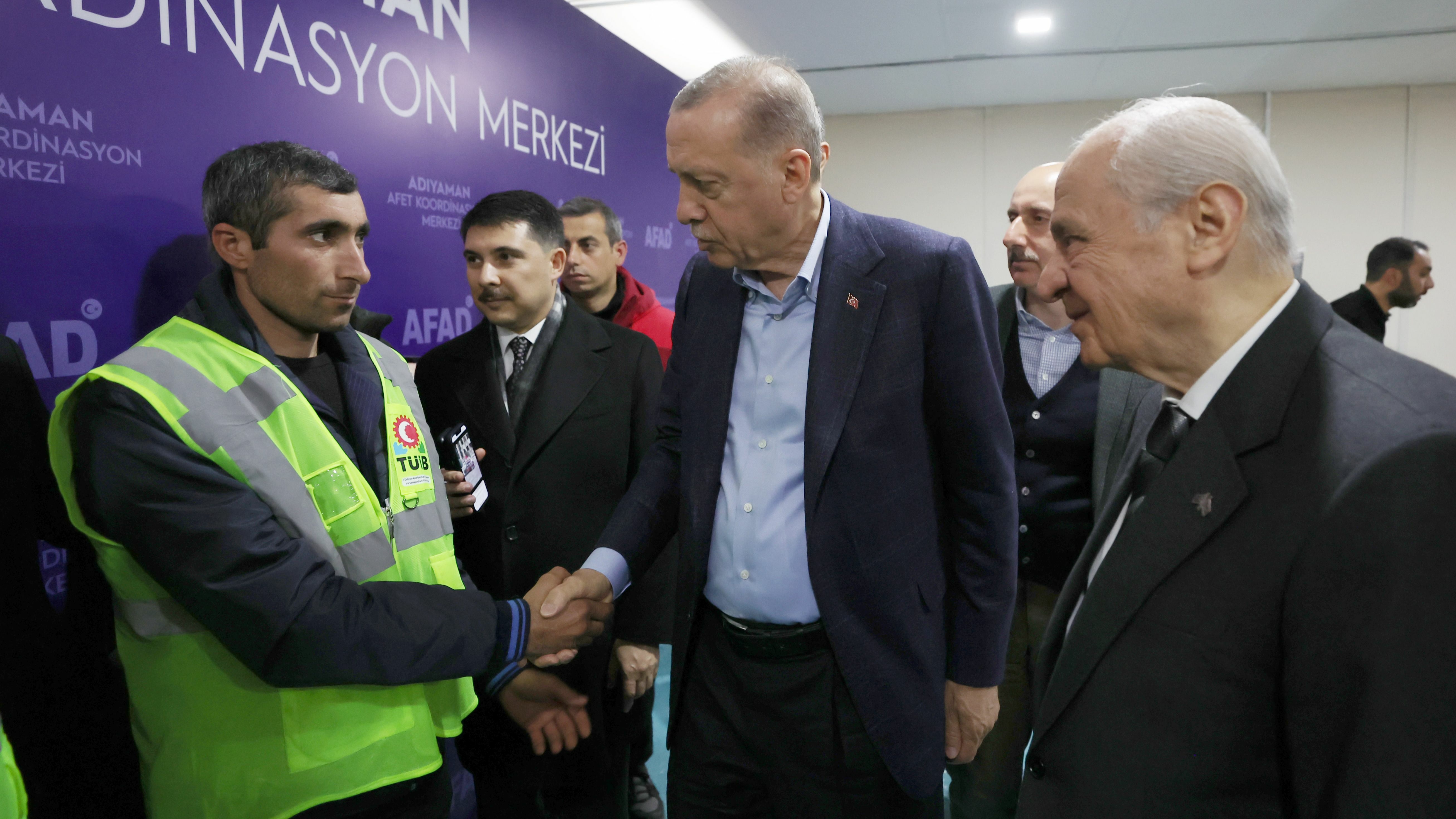 Cumhurbaşkanı Recep Tayyip Erdoğan, MHP Genel Başkanı Devlet Bahçeli ile Altınşehir Konteyner Kenti'nde incelemelerde bulundu, depremzedeleri konteynerlerinde ziyaret etti.