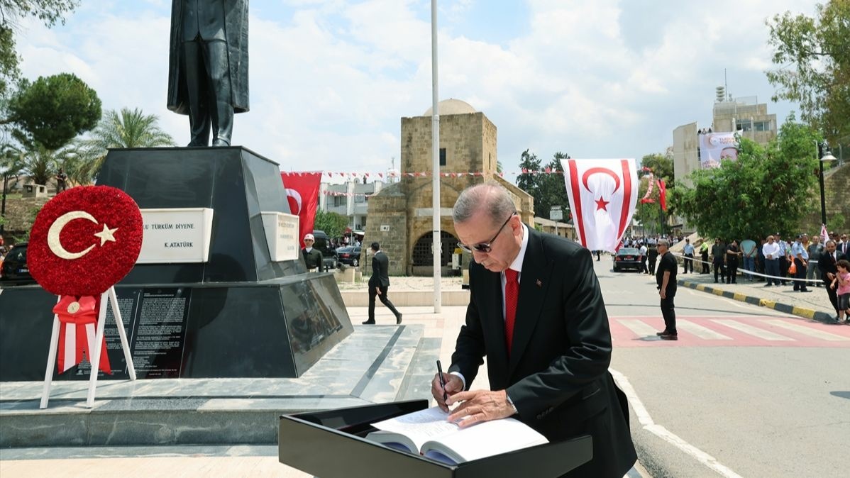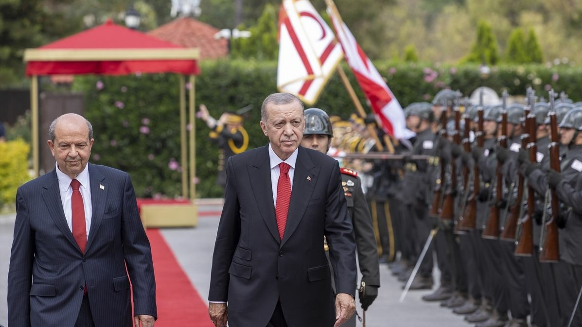 Bu amaçla özel uçak "TUR" ile KKTC’ye gelen Erdoğan’ı, Ercan Havalimanı'nda askeri tören eşliğinde Cumhurbaşkanı Ersin Tatar karşıladı.