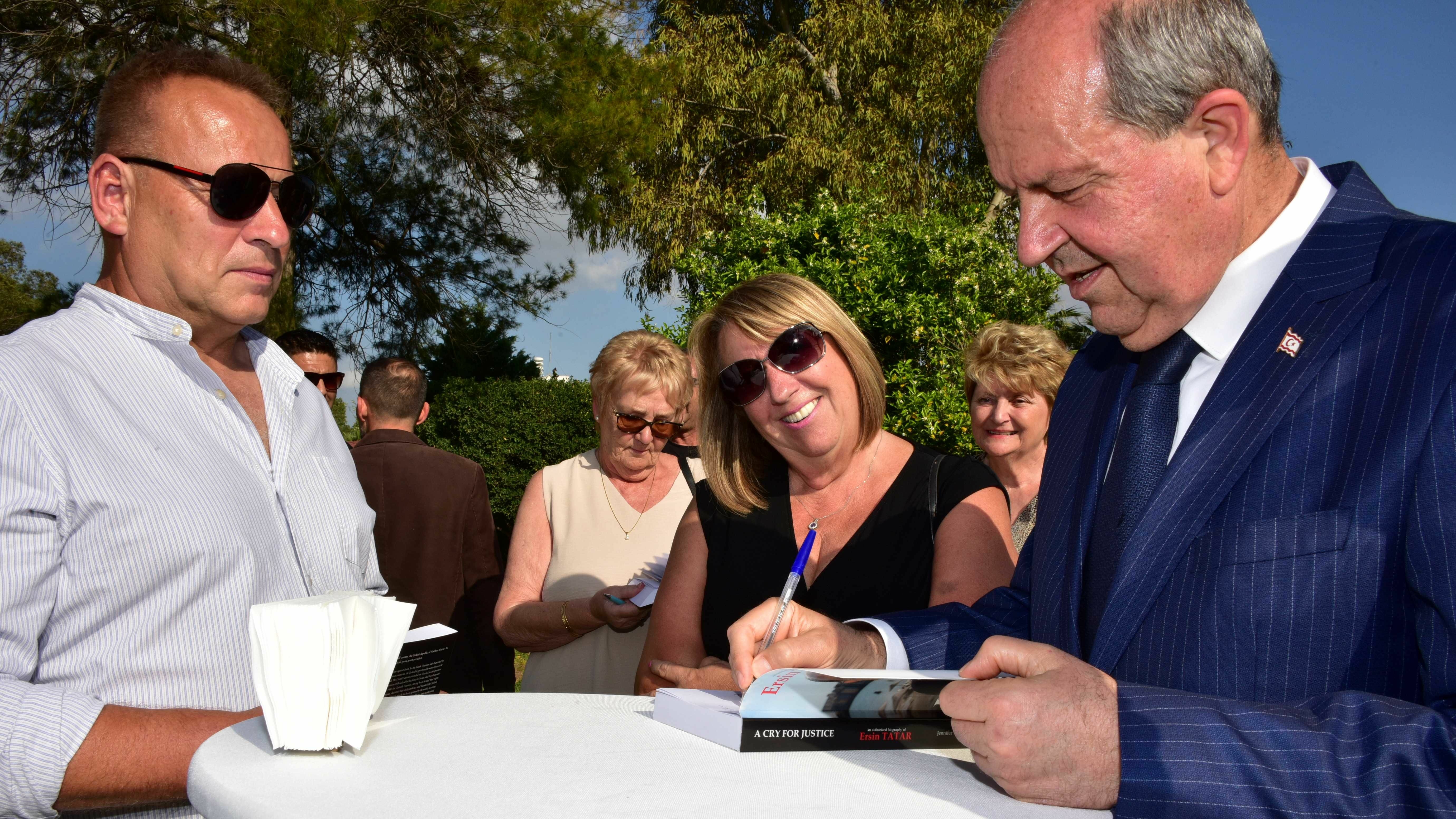 Tanıtımda, Cumhurbaşkanı Ersin Tatar ve yazar Jennifer Vardy’nin yanında, yazar ile Cumhurbaşkanı Tatar’ın tanışmasına vesile olan eski Yüksek Mahkeme Başkanı Taner Erginel birer konuşma yaptı.