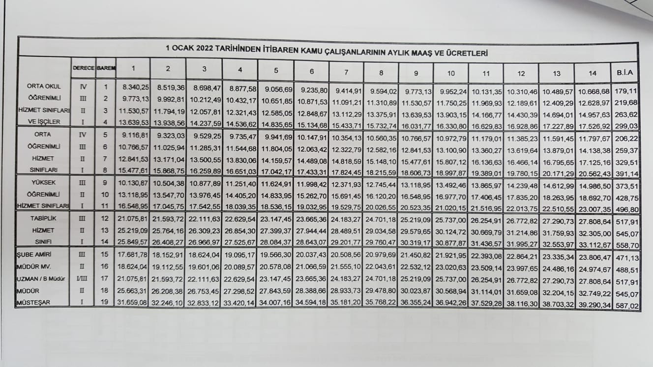 1 Ocak tarihinden itibaren kamu çalışanlarının aldığı maaşlar ise şöyle: