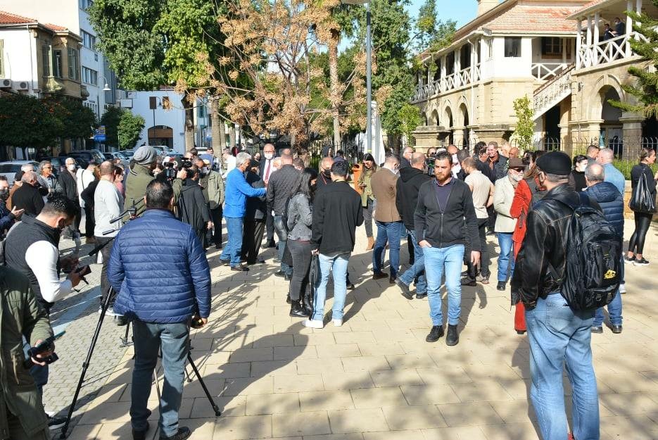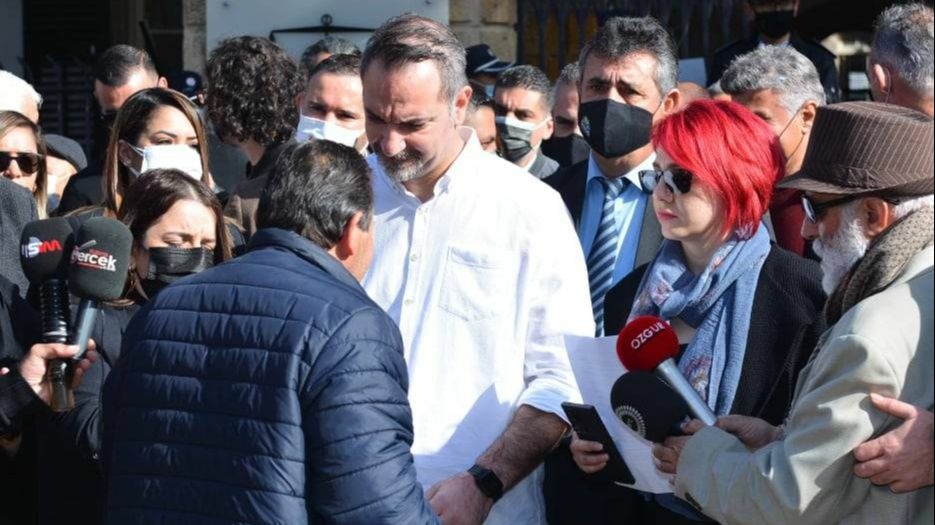 Birçok sivil toplum örgütü temsilcisi, gazeteciler, muhalif parti milletvekilleri ile siyasiler, dava nedeniyle ifade ve basın özgürlüğü için sabah saatlerinde Lefkoşa Mahkemeleri önünde eylem yaptılar.