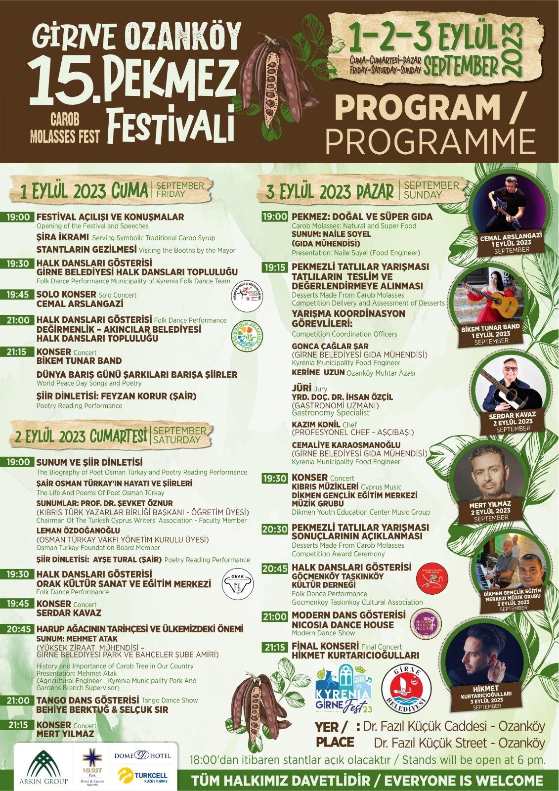 Festival boyunca, konserler, şiir dinletileri, halk dansları gösterileri ve tatlı yarışmaları düzenlenecek.