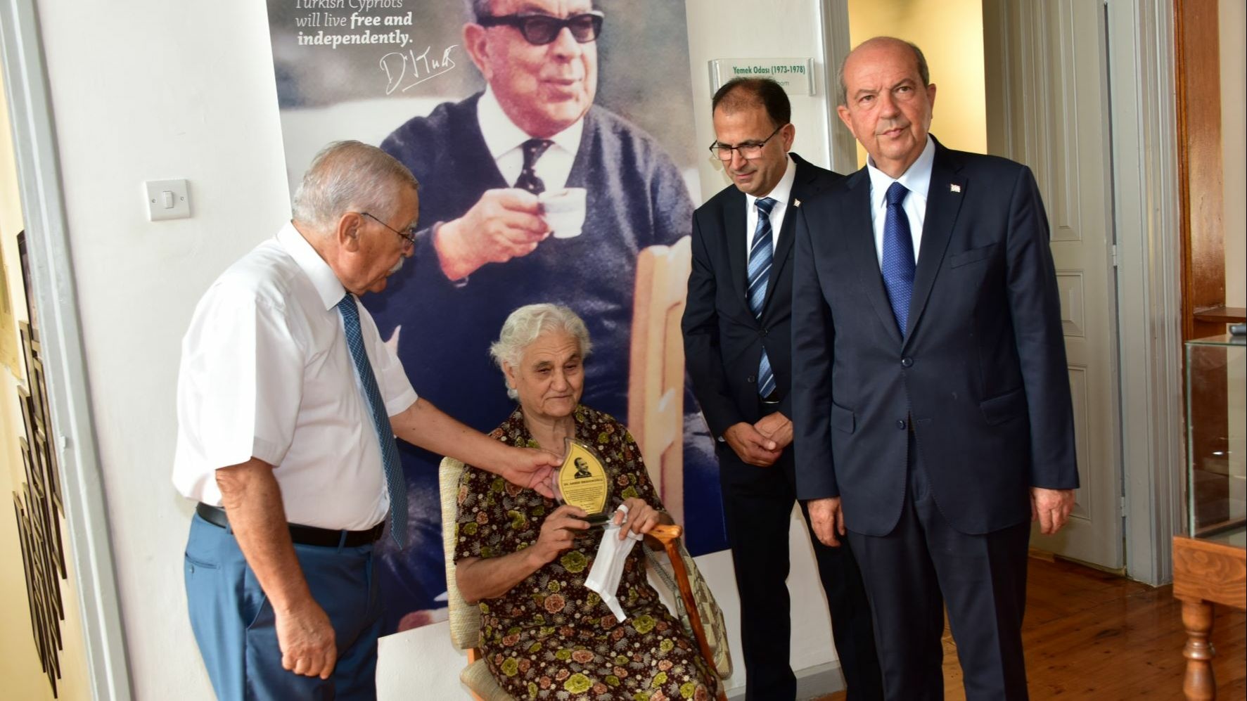 Amber İbrahimoğlu, İngiliz sömürgesi yıllarında, bayrak kullanılmasının yasak olduğu dönemde evinde diktiği Türk bayrağını bugün düzenlenen törenle Dr. Fazıl Küçük Müzesi’ne hediye etti.