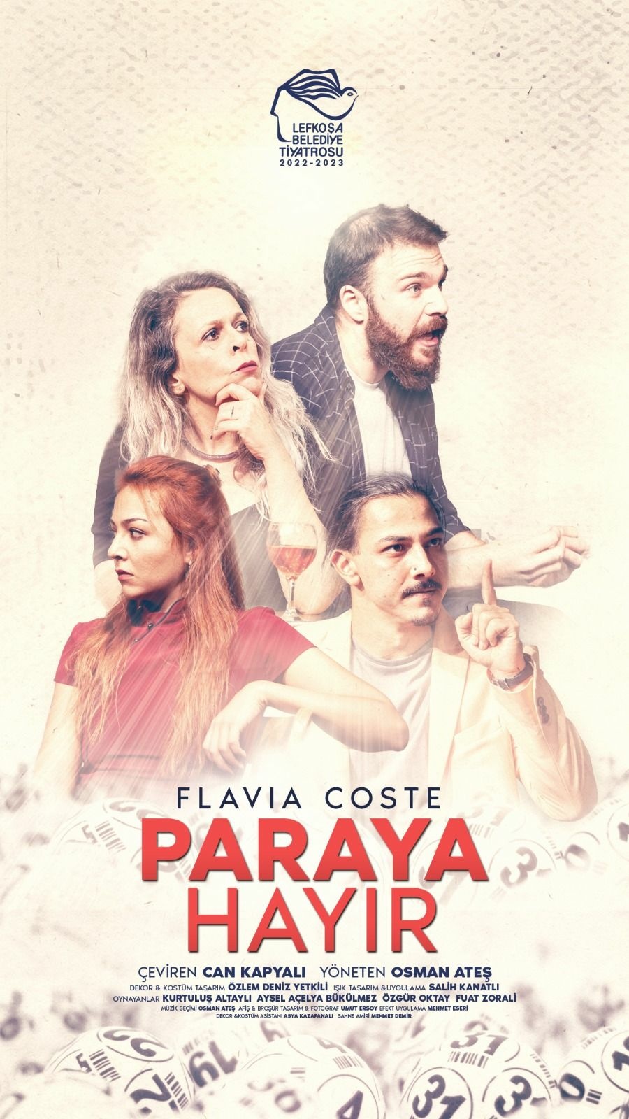 LBT’den yapılan açıklamaya göre, Flavia Coste’nin yazdığı, Osman Ateş’in yönettiği “Paraya Hayır” isimli tek perdelik komedi, Lefkoşa Belediye Tiyatrosu’nda her çarşamba akşamı sahnelenmeye devam edecek.