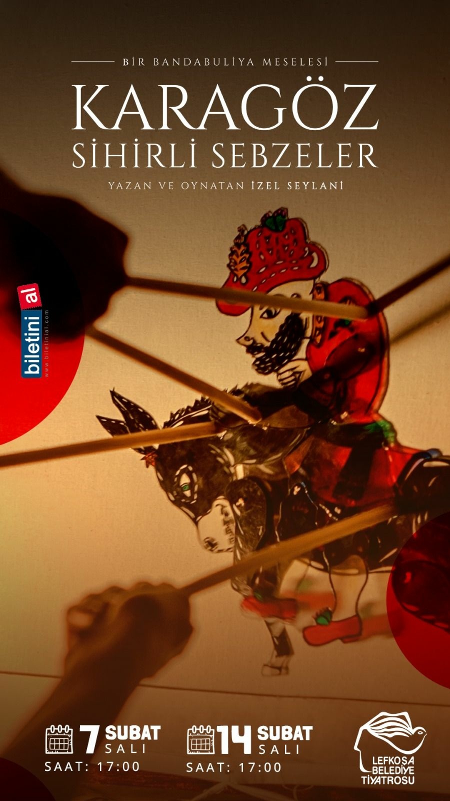 “Karagöz Sihirli Sebzeler” de şubat tatilinde çocuklarla buluşacak. Oyun, 7 ve 14 Şubat salı günleri saat 17.00’de Lefkoşa Belediye Tiyatrosu Salonu’nda sahneye konulacak.