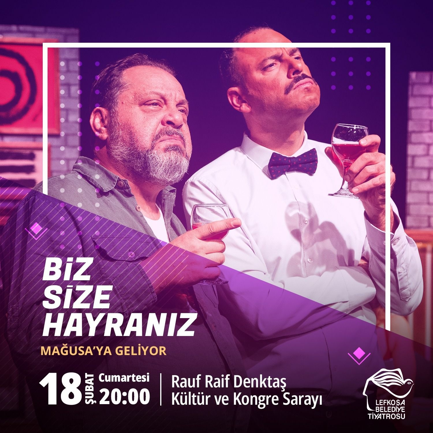 Carole Greep’in yazdığı, Cem Aykut'un yönettiği “Biz Size Hayranız” oyunu ise, Girne ve Mağusa seyircisiyle buluşacak. Oyun, 11 Şubat Cumartesi saat 20.00’de Girne Belediyesi Oda Tiyatrosu’nda, 18 Şubat Cumartesi saat 20.00’de Rauf Raif Denktaş Kültür ve Kongre Merkezi’nde sahnelenecek.