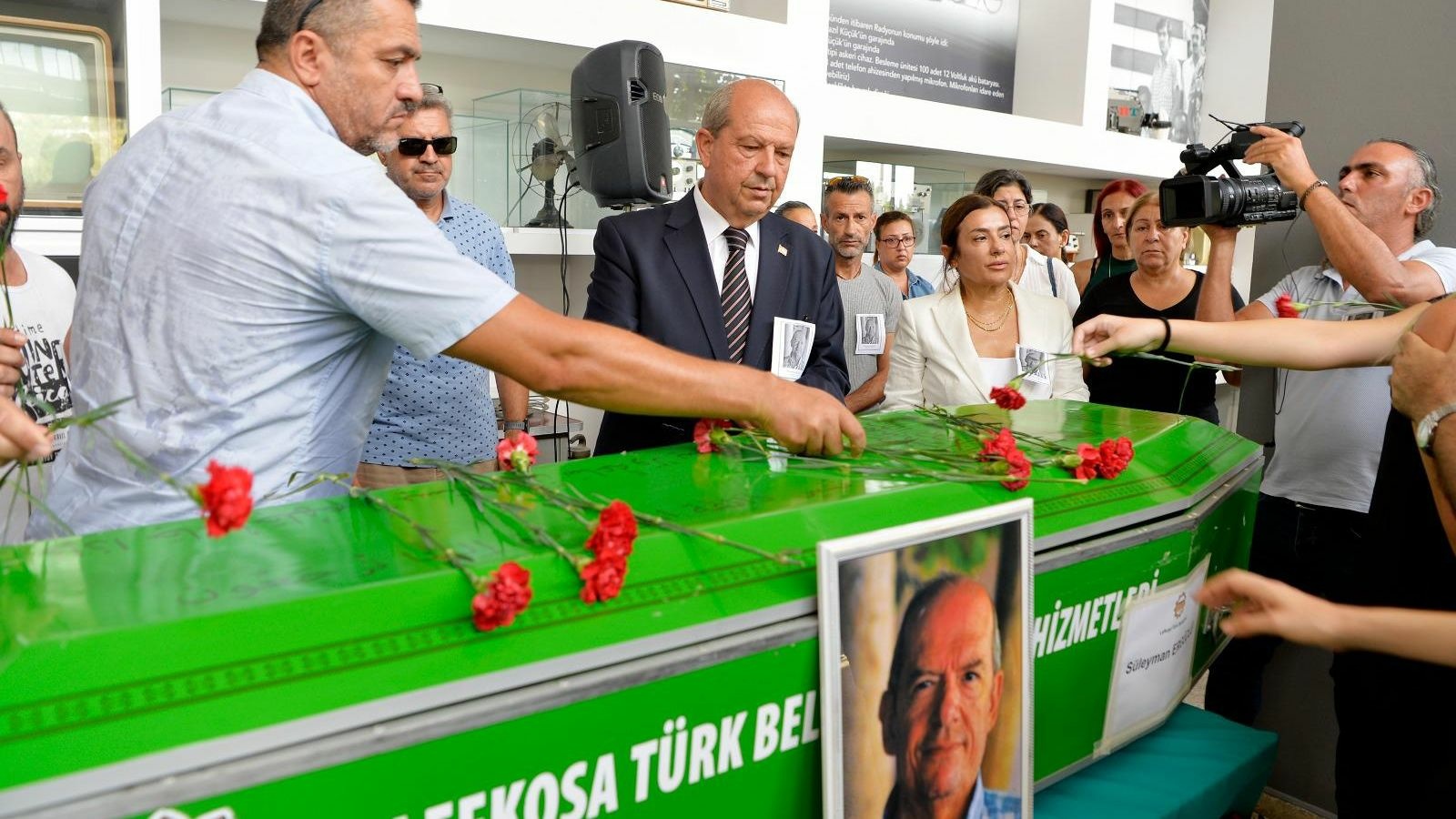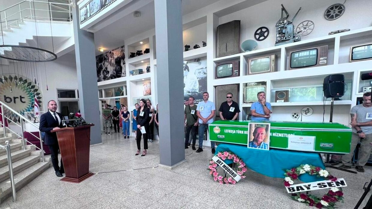 Basın sektörünün her kademesinde görev yapan Süleyman Ergüçlü için uzun yıllar hizmet ettiği Bayrak Radyo Televizyon Kurumu’nda düzenlenen törende eşi Neşe Ergüçlü ve ailesi taziyeleri kabul etti.