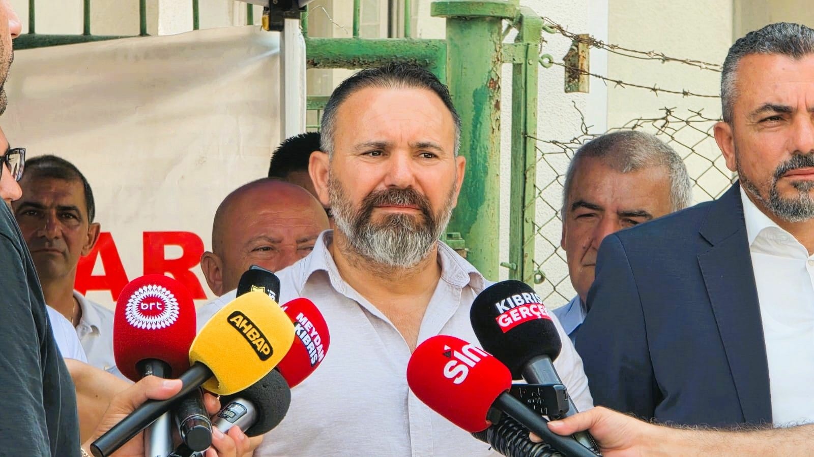 Lefkoşa'daki Telekomünikasyon Dairesi önünde düzenlenen eylemde, Tel-Sen Başkanı Hakan Üredi, Türk-Sen Başkanı Arslan Bıçaklı, KTAMS Başkanı Güven Bengihan ve Kamu-İş Başkanı Ahmet Serdaroğlu basına açıklamada bulundu.