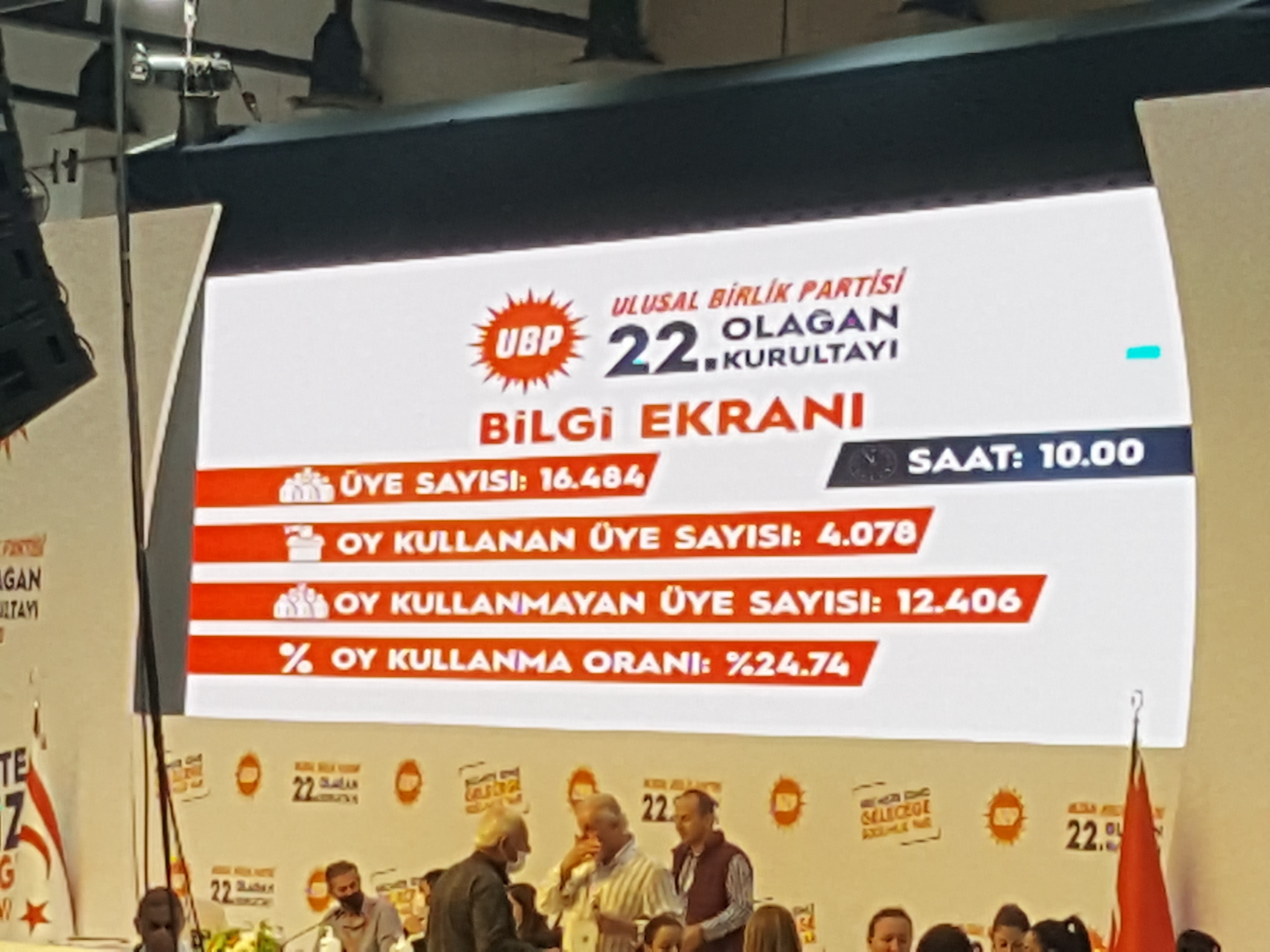 16 bin 484 UBP üyesinden 8 bin 727'sinin oy kullandığı kurultayda, katılım oranı ise yüzde 52,94 oldu.