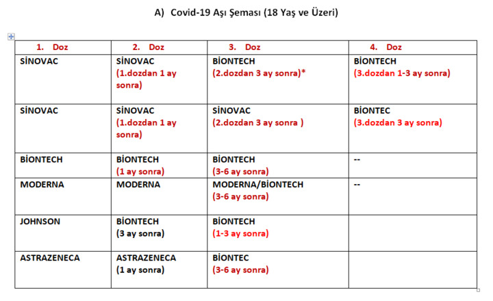 Kişiler yukarıda belirtilen aşılardan iki dozunu farklı aşı ile olmaları halinde de aşılı kişi olarak kabul ediliyor.