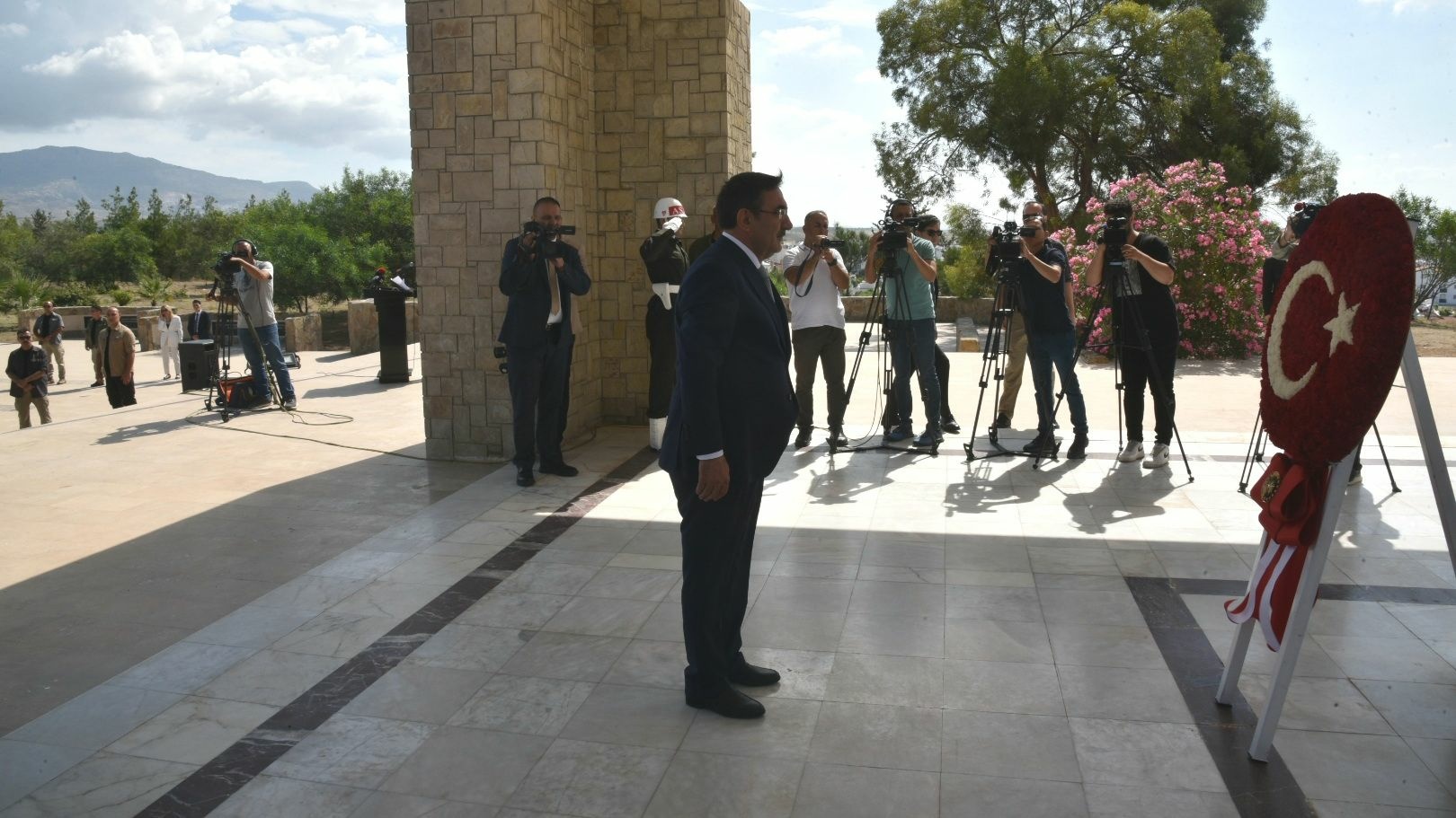 Türkiye Cumhurbaşkanı Yardımcısı Yılmaz, ardından kurucu Cumhurbaşkanı Rauf Raif Denktaş’ın anıt mezarını ziyaret etti