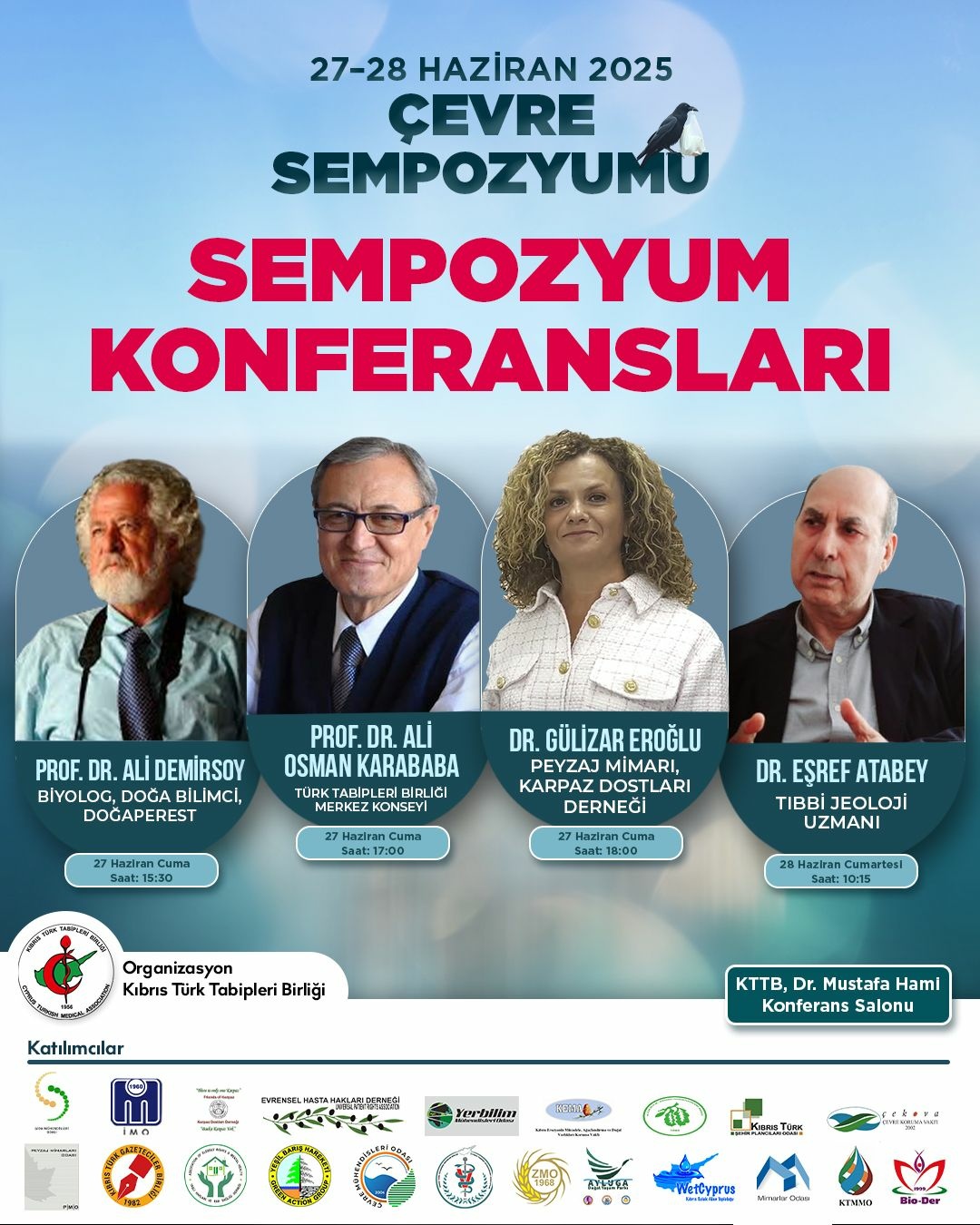 Sempozyum kapsamında Türkiye’den Doğa Bilimci, Biyolog ve doğaperest Prof. Dr. Ali Demirsoy “Küresel İklim Krizi”, Halk Sağlığı Uzmanı Prof. Dr. Ali Osman Karababa ile Tıbbi Jeoloji Uzmanı Dr. Eşref Atabey “Lefke CMC Bakır Madeni, Çevre ve İnsan Sağlığı”, KKTC’den Dr. Gülizar Eroğlu ise “Atatürk ve Çevre” başlıklı konferanslarda sunum gerçekleştirecek.