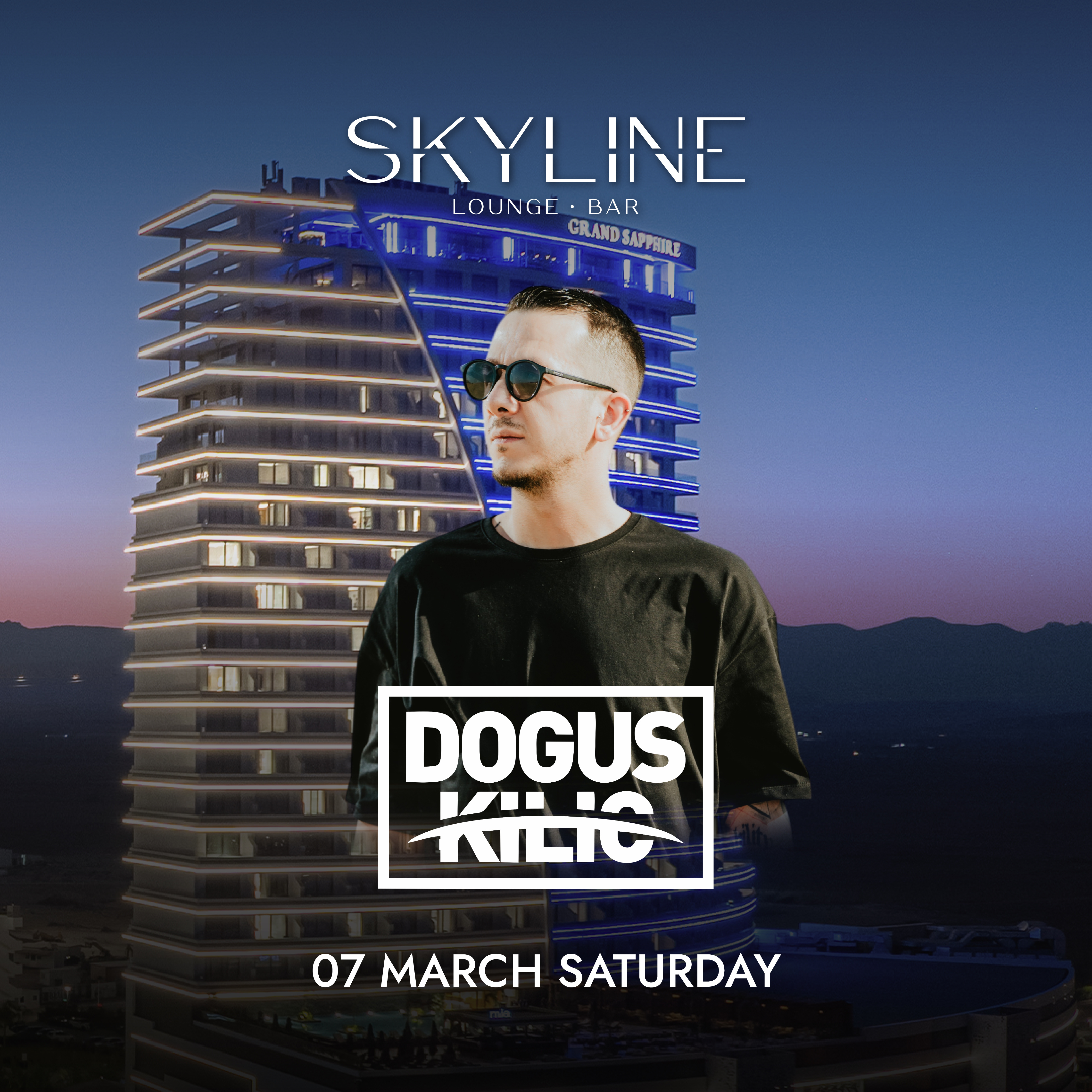 DJ Doğuş Kılıç, 7 Mart Cumartesi akşamı, en sevilen setleri ve yüksek enerjisiyle Skyline Lounge & Bar’da eğlencenin ritmini zirveye taşıyor.
