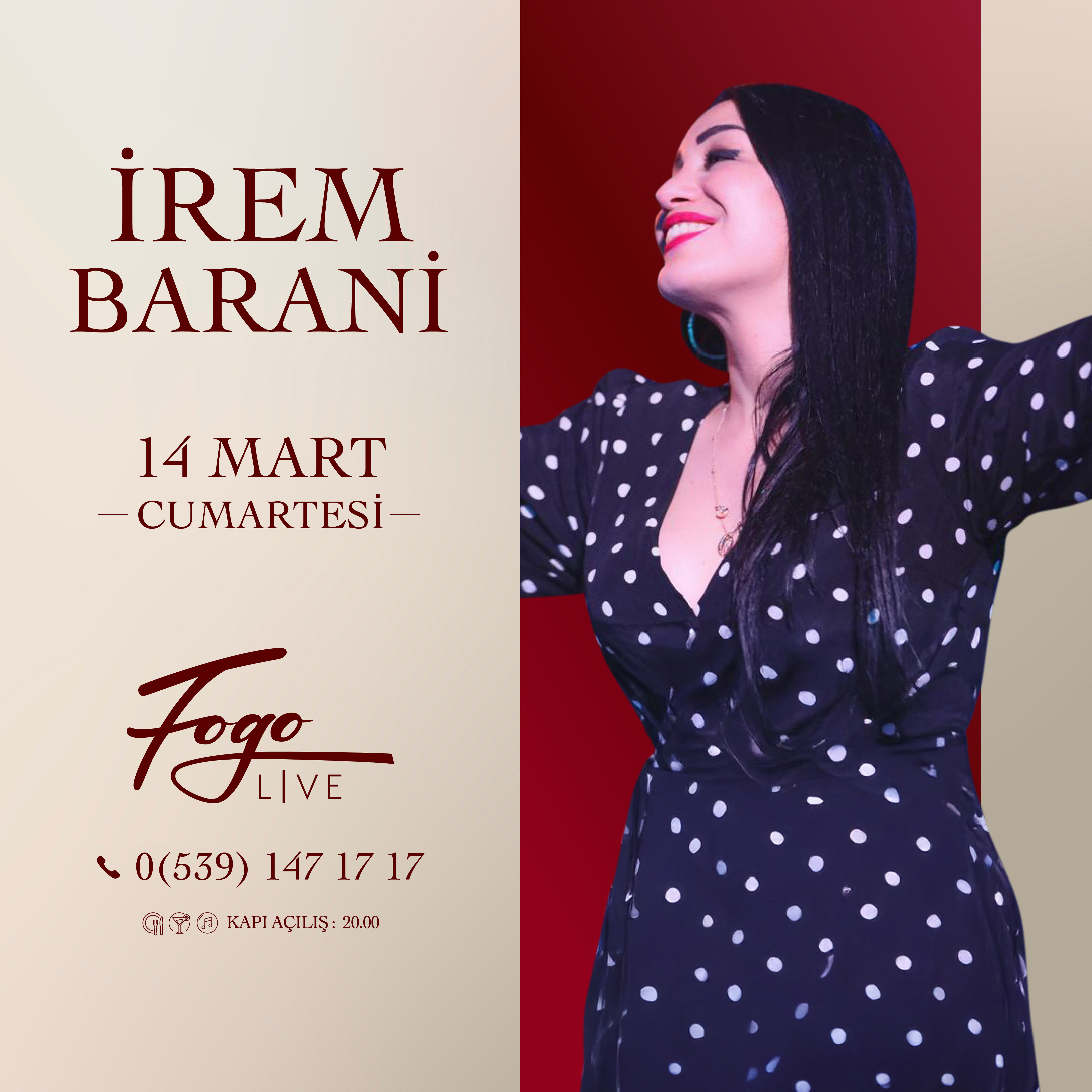 İrem Barani 14 Mart Cumartesi akşamı Fogo Live sahnesine çıkıyor.